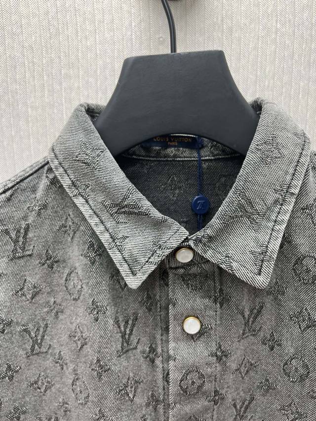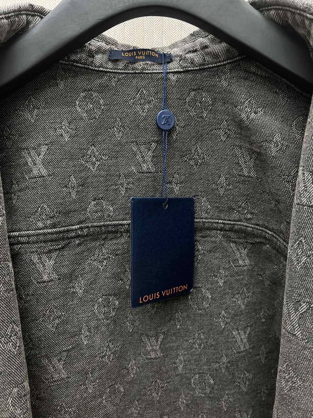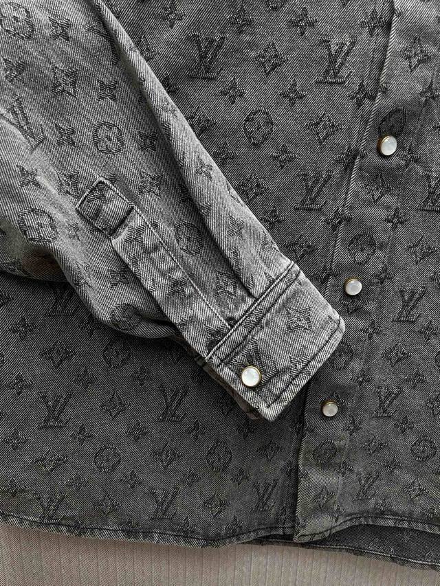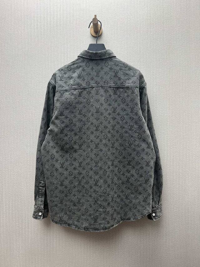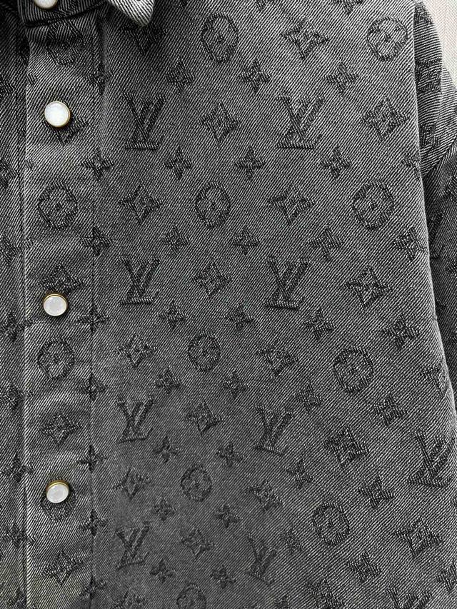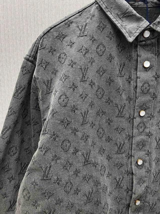Louis Vuitton's new runway denim shirt is dazzling and makes daytime looks stand out. The shirt jacket is made of denim with an all-over Monogram jacquard print. High-quality unisex style. Sizes: S, M, L, XL.