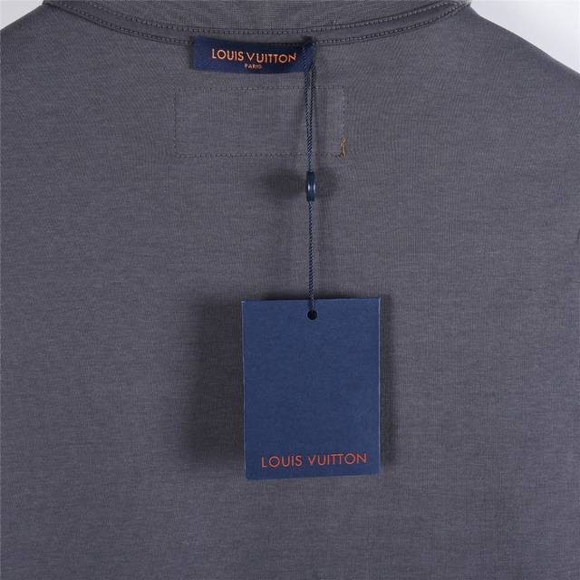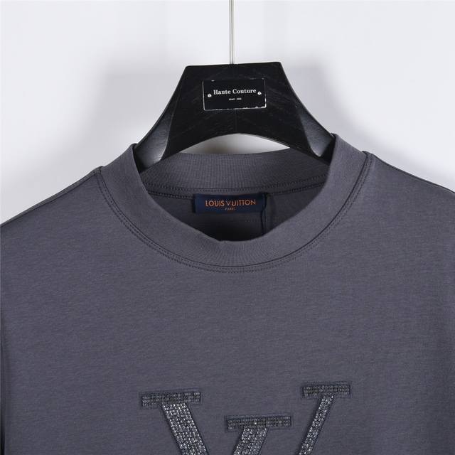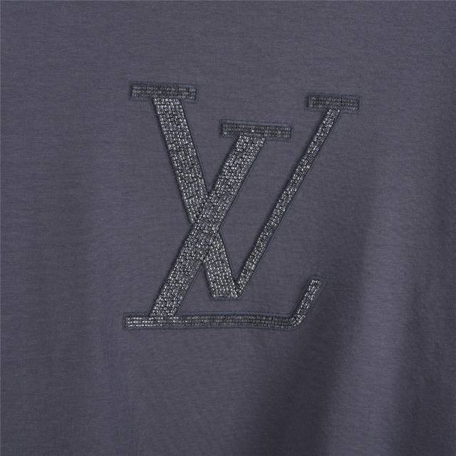 Louisvuitton 25Fw Large Logo Beaded Tatami Embroidered Long-Sleeved T-Shirt. Made from custom-woven, custom-dyed, washed, smooth, long-staple cotton, weighing 310g, this latest boutique model is a long-sleeved base layer. This T-shirt features beaded embroidery depicting the Louis Vuitton logo on the chest, creating ripples on the surface of water. The same element continues on the reverse-effect 1V label on the back, adding a touch of freshness to this casual piece. The embroidery utilizes a beaded tatami technique, with the beads creating a raised, three-dimensional surface. This creates a rich, undulating effect, adding to the pattern's three-dimensional texture. The beads are custom-dyed using the original pattern to create a gradient beading effect, resulting in a saturated, vibrant color. The beads are fully applied, with a distinct number of beads, creating an outstanding three-dimensional effect.
