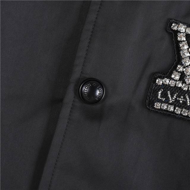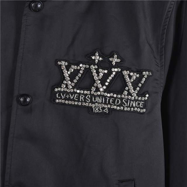 . A precise blend of 82% cupro and 18% cotton creates a cloud-like, skin-friendly feel. The cuffs and pockets feature 50% top-grain cowhide leather and 50% Australian sheep wool, two premium materials hand-aligned for a seamless connection. Every inch of the texture speaks to the meticulous craftsmanship of luxury goods. The laser-cut suede edges are architecturally precise, a quality unmatched by other brands. The gradient rhinestones on the chest are no assembly line creation! The spacing between each diamond is calculated according to the golden ratio, and a fingertip stroke reveals a three-dimensional, raised star-shaped track. This miniature sculpture, crafted with the microscope of Lv's artisans, avoids the flatness and fragility of cheap rhinestones. The silhouette is subtle yet not overly bulky. The gently curved back creates a dynamic, flowing silhouette like a cape, imbuing every gesture with the commanding presence of a dark knight.