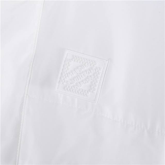 is expertly crafted from a blended fabric for superior quality, providing soft, comfortable, windproof warmth. It features a front-embellished rubber patch with the brand's logo, a stowable and adjustable Monogram hood, elastic cuffs and waist, breathable underarm eyelets, a tonal lining, and a hidden front zipper. The casual style complements a variety of clothing for a stylish look. Custom trims are available, along with all three labels. Available in unisex sizes!