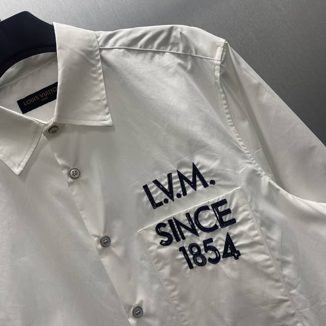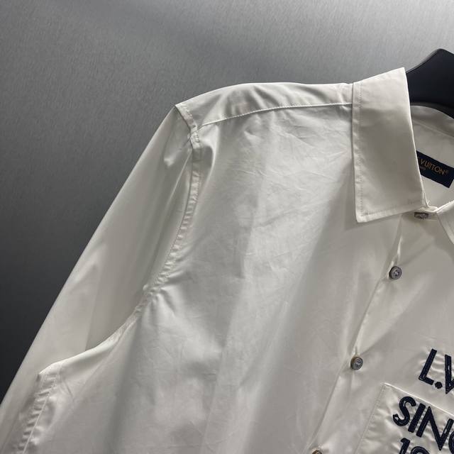Lu Long-Sleeve Logo Shirt Ddd This crisp village shirt, tailored from cotton poplin, is further refined by the Legacy logo from the Spring/Summer 2026 runway show. Inspired by the history of Louis Vuitton's personalized trunks, the chest pocket features a contrasting Lv.M. lettering with a hand-painted effect. This versatile piece can be paired with both formal and everyday looks. DDD