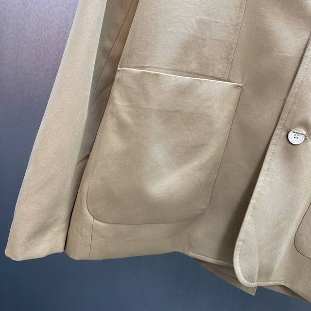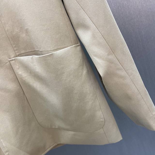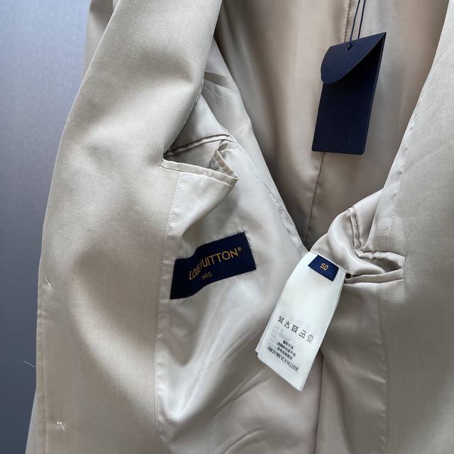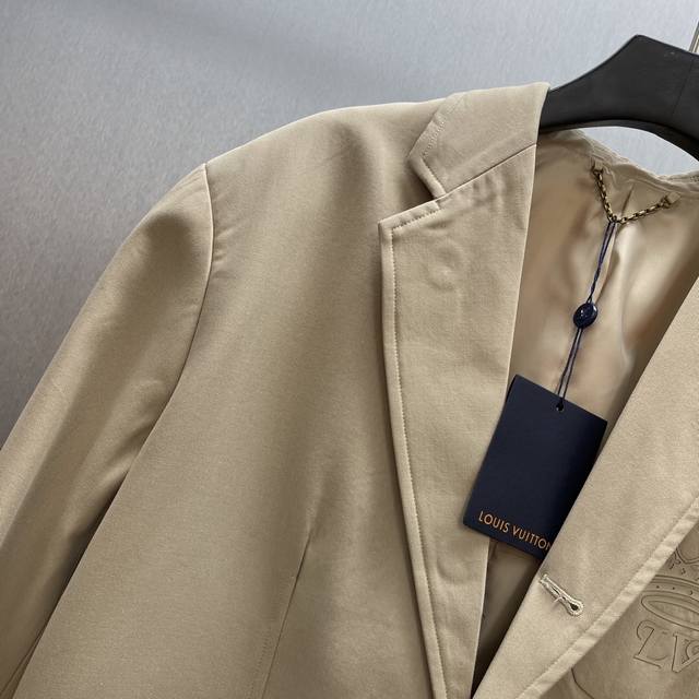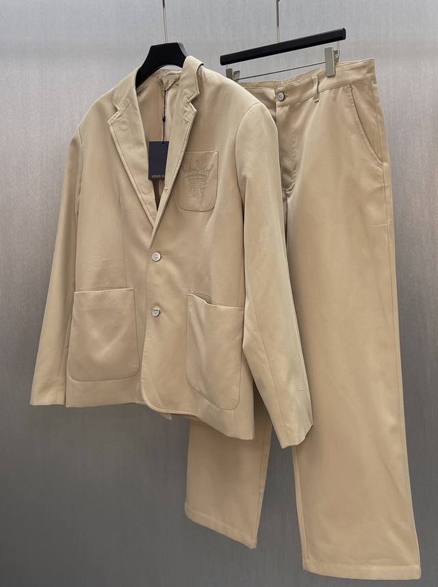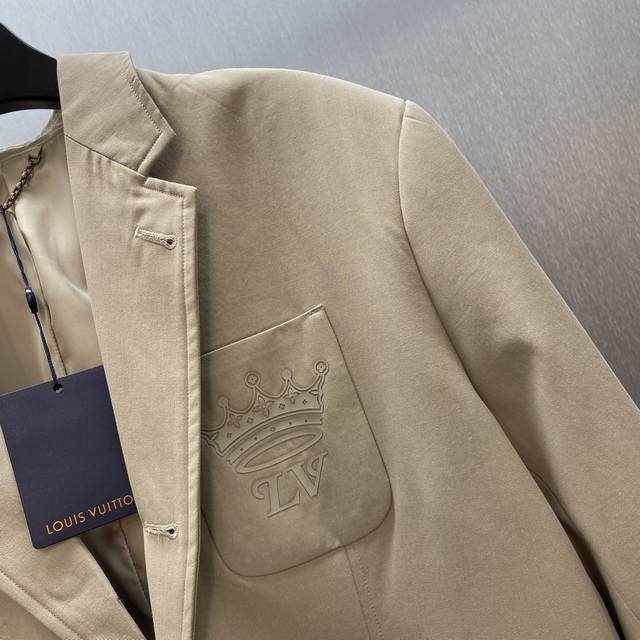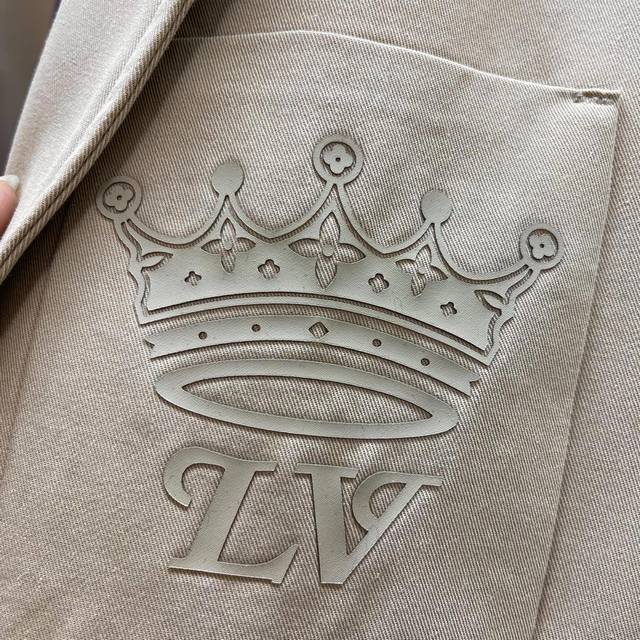 Lu Single-breasted Urban Jacket Suit Ddd Size: S-XL Ddd This single-breasted jacket is crafted from a delicate silk-cotton blend to create a relaxed fit, while the LV Crown logo adds a touch of glamour to the chest pocket. The notch lapel transforms into a military collar when stood up, and pearlescent buttons add a sophisticated touch. It can be worn as a suit jacket or paired with matching trousers for a modern look. DDD