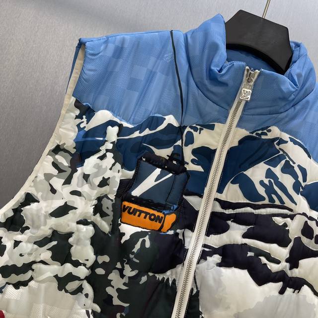 Lu Snow Mountain Vest Down Jacket Ddd Size: S-XL Ddd This new 24Ss sleeveless padded vest from Louis Vuitton adds a touch of vibrant retro style to this season's ski attire. The full-coverage Damier Skiers print features a romantic mountain landscape Ddd paired with a Damier pattern background, and is cleverly finished with quilted details, adding a striking touch to your post-skiing casual look Ddd