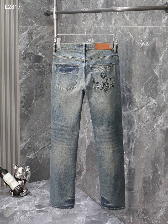 Lv 2025 Autumn/Winter European Department Store New Arrival Super A Grade Overseas Trading Company Order Source, Top Original High-End Men's Custom Fashion Slim Fit Straight Leg Jeans 2817 DDD Color: Heavy Process Sand Wash, As Pictured DDD Size: 29-40 DDD Fabric: Denim Washed Jeans! Luxurious Experience. Customer-supplied trading channels, classic trousers with simple charm. Made with customer-supplied denim, thick, comfortable, and breathable. High-quality craftsmanship and tailoring are first-class, the overall design is very exquisite, and the edging design is meticulous. The use of multi-strand mechanical stitching technology highlights the brand's luxurious inner charm. The brand logo is full and thick, and the engraved buttons are thick and meticulous, bringing a brand new fashion taste to this otherwise ordinary trousers! DDD Accessories: All three labels are complete DDD