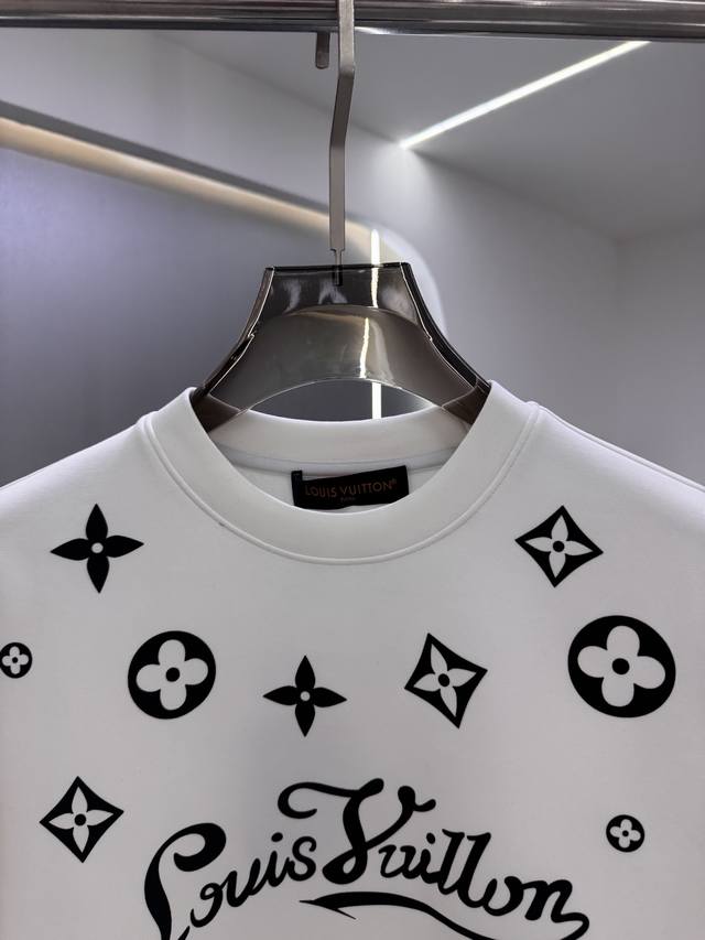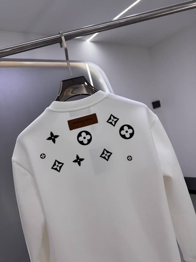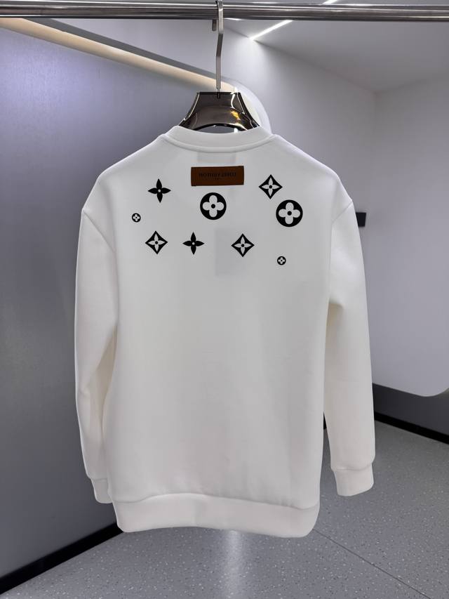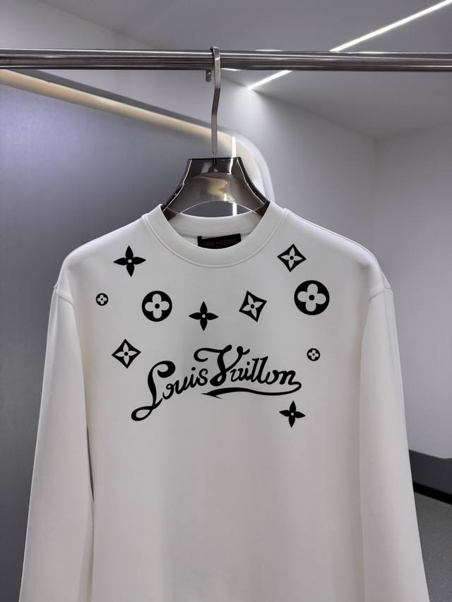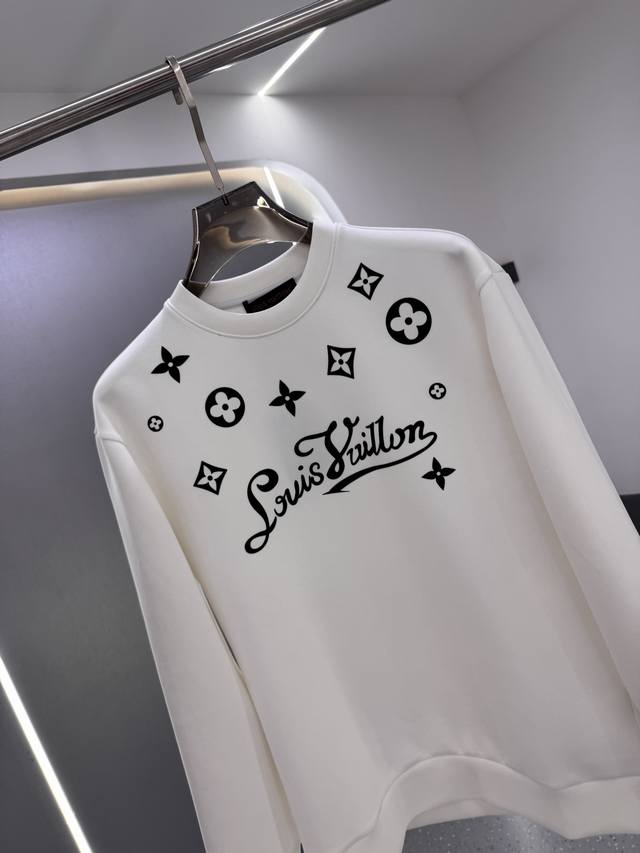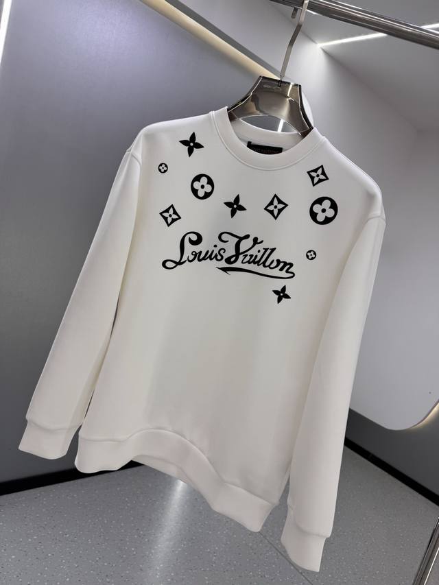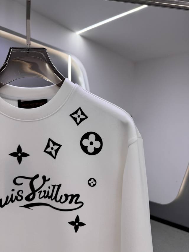 Lv 2025 Autumn/Winter Men's Letter Logo Pullover Space Cotton Sweatshirt, classic Os style, simple yet stylish. Perfect for everyday wear, sports, casual, and business... Made with DDD customer-supplied space knit cotton, produced through a micro-knitting 3D process, the inner lining is meticulously crafted like scales, with a superior texture, breathability, comfort, and unparalleled detail and softness. Ideal for wearing alone or as an inner layer. DDD Colors: White, Black DDD Sizes: S-XL DDD