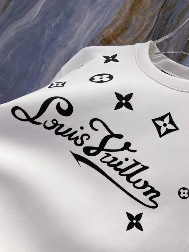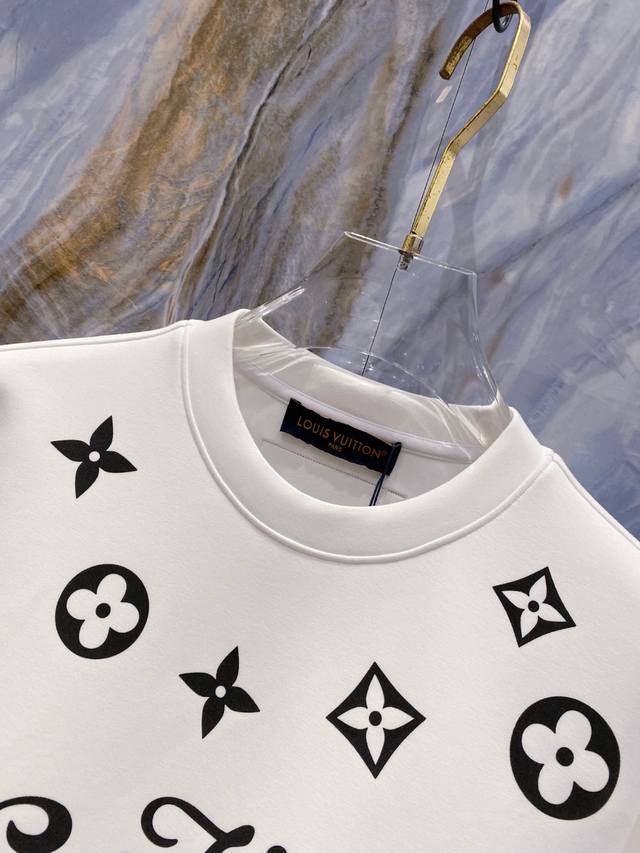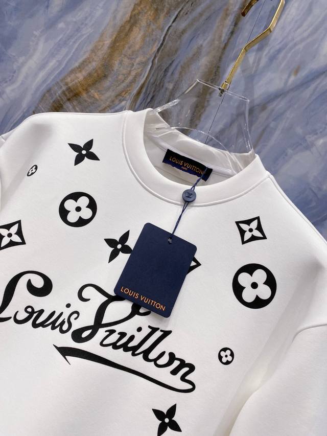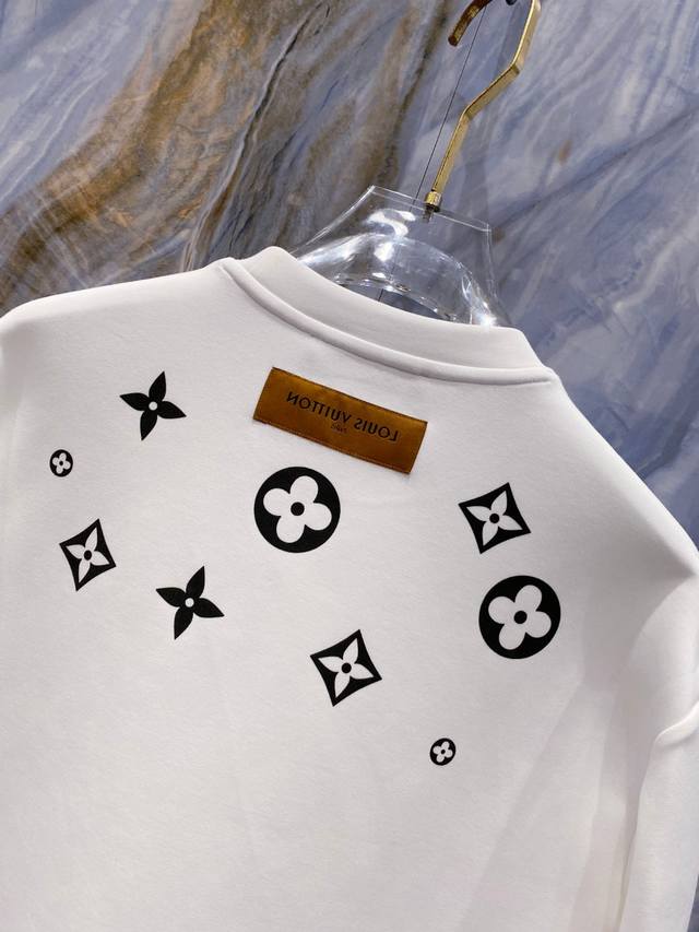 Lv 2025 Autumn/Winter Men's Letter Logo Pullover Space Cotton Sweatshirt, classic Os style, simple yet stylish. Perfect for everyday wear, sports, casual wear, and business attire... Made with DDD customer-supplied space knit cotton, produced through a micro-knitting 3D process, the inner lining is meticulously crafted like scales, with a superior texture, breathability, and unparalleled softness and detail. Ideal for wearing alone or as an inner layer. DDD Colors: White, Black DDD Sizes: Xssml DDD