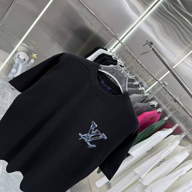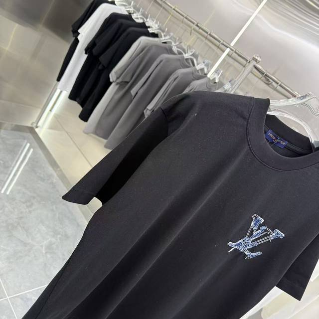 / Lv 2025 Autumn/Winter New Arrival 320g Custom Fabric Round Neck Short Sleeve Emb