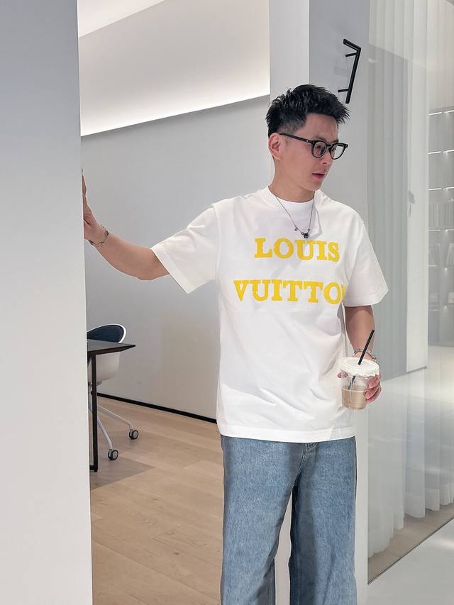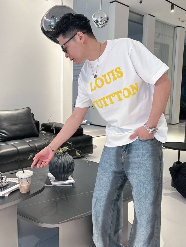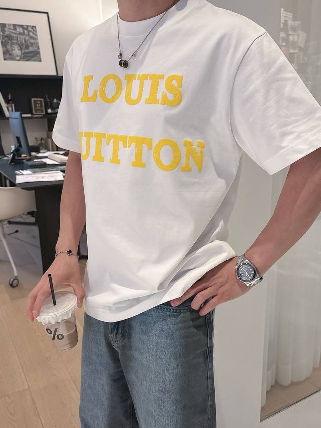 Lv 2025 Early Spring New Unisex Short-Sleeve T-Shirt! Custom-made pure cotton fabric, custom original ribbed craftsmanship, and heavy-duty letter logo design on the chest! Simple and elegant, versatile and high-end, perfectly blending fashion and style