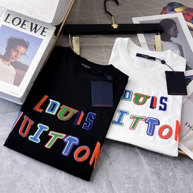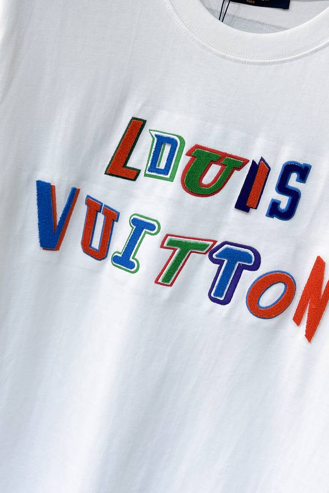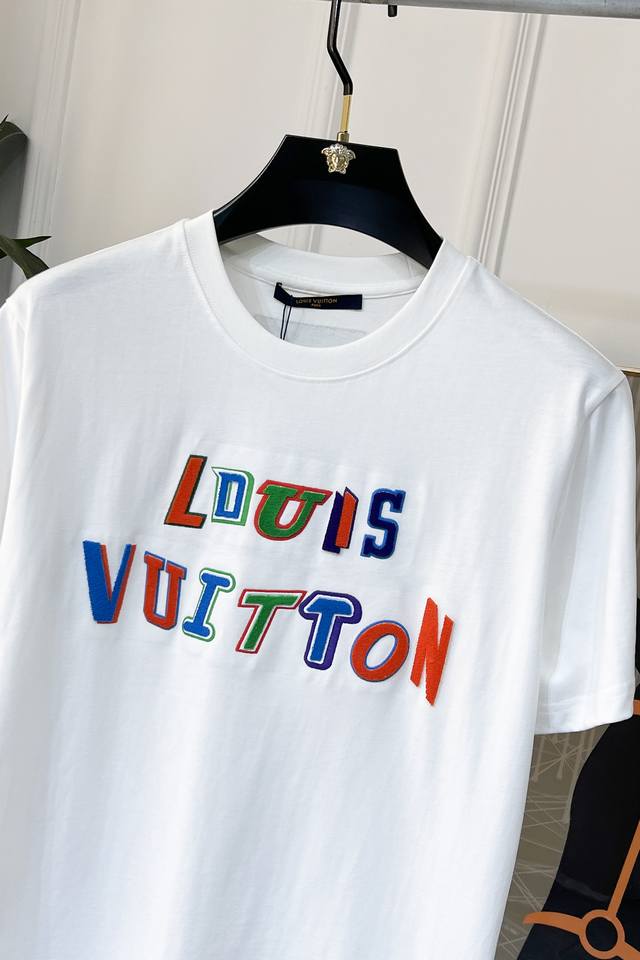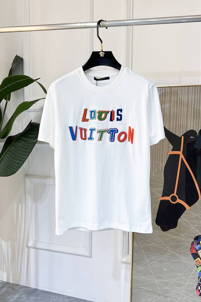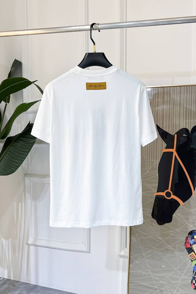 Lv - 2025 Spring/Summer New Unisex Short-Sleeve T-Shirt, Available Now in Stores! Made with custom-designed pure cotton fabric, featuring a printed logo on the chest! Simple and stylish, versatile and high-end, perfectly blending fashion and style