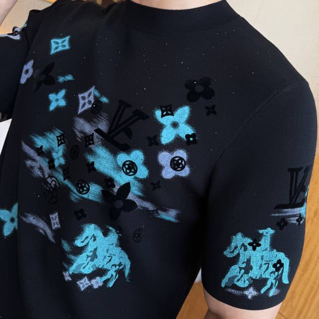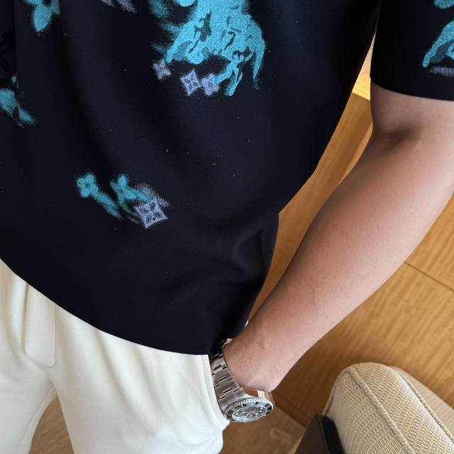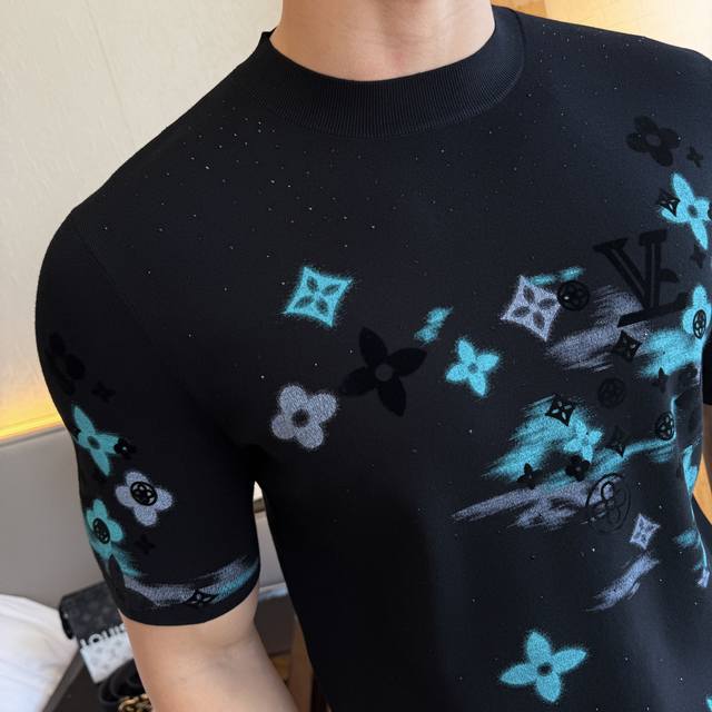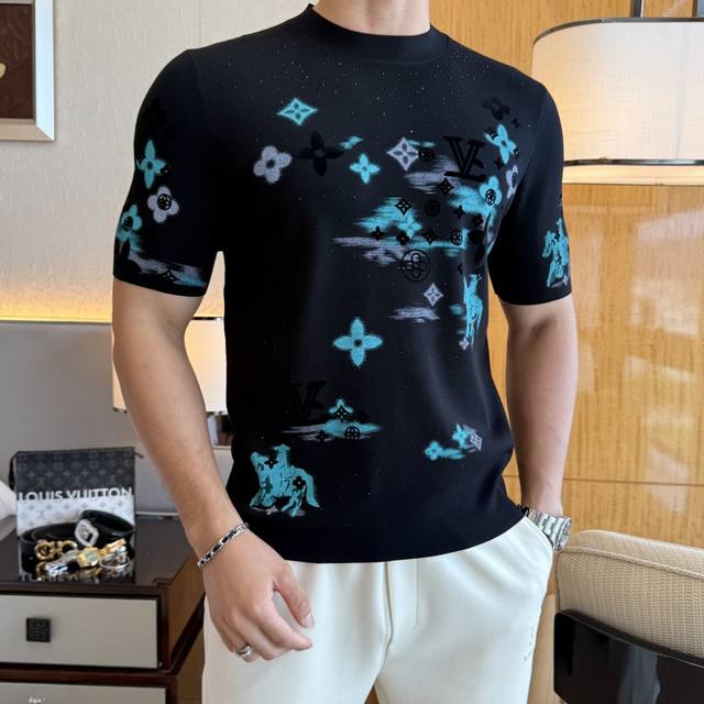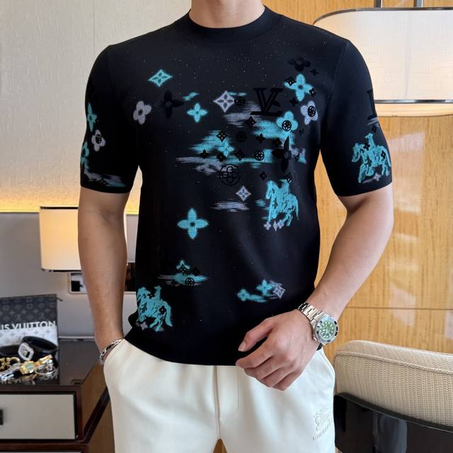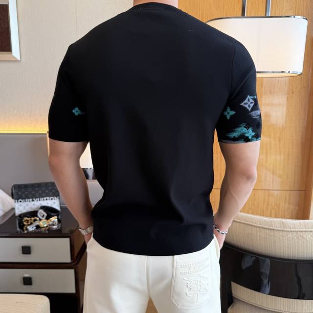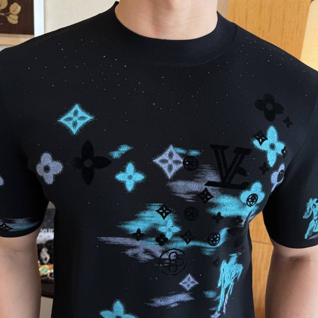 Lv -2025Ss Autumn/Winter Short-Sleeve Knit Sweater Series! A must-have for casual and business wear, perfect for layering or wearing alone. Made from a premium fine mulberry silk blend fabric, the fabric is delicate to the touch, comfortable against the skin, and doesn't irritate the skin. It has a flattering fit and provides warmth. The unique boutique logo design is a must-have for men! Sizes: M-3XL