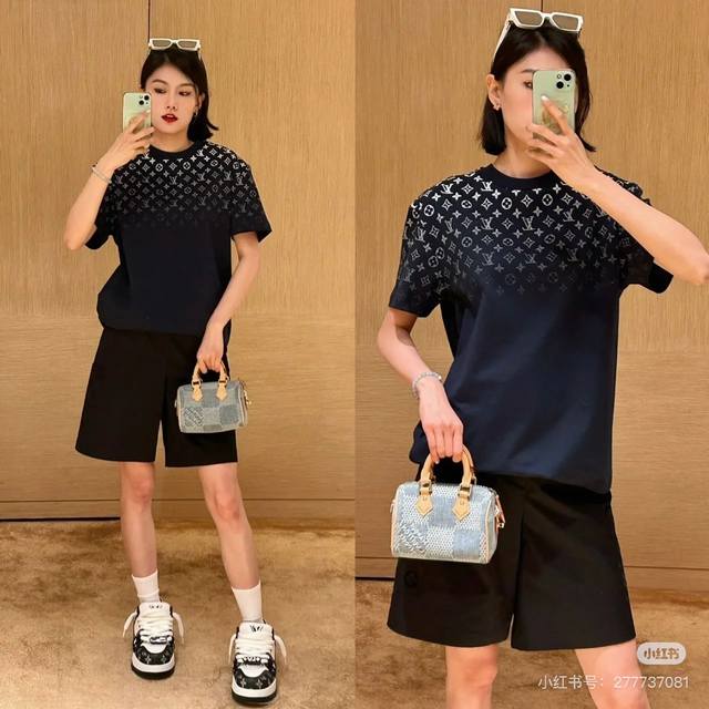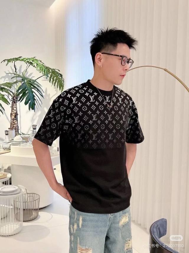 Louis Vuitton full print upper gradient letter print short-sleeved T-shirt