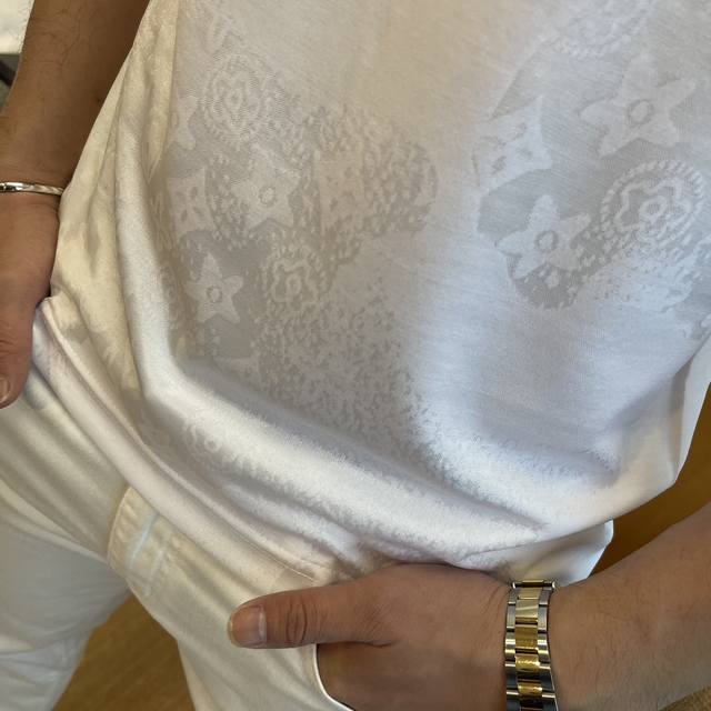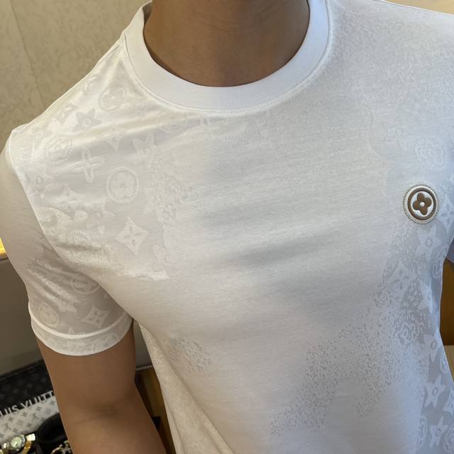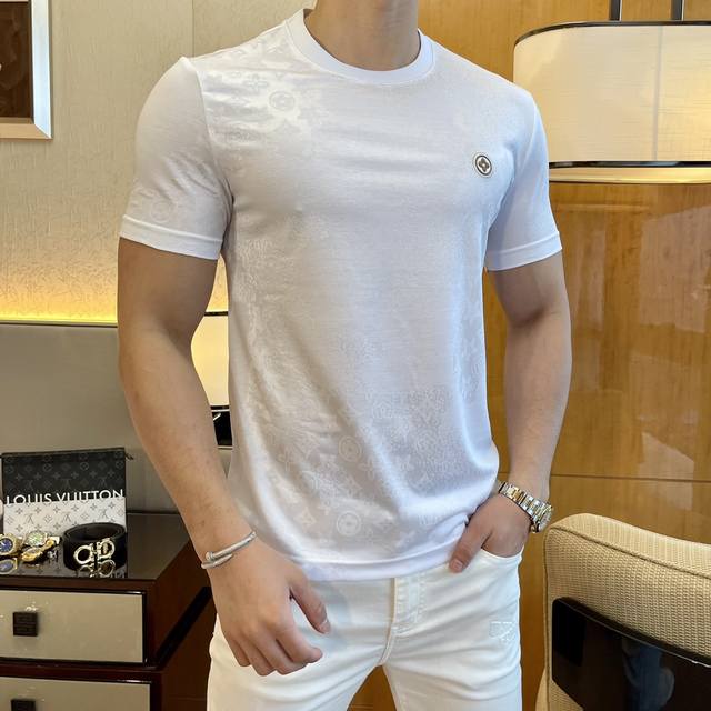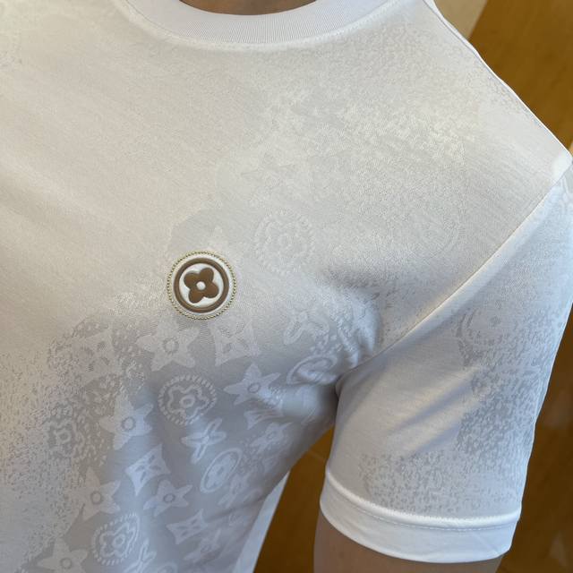 Lv 2025Ss New Year's Spring/Summer Premium Short-Sleeve T-Shirt, Official Website Synchronized High-End Quality Customization, Top-Grade Tencel Cotton Fabric, 1:1 Production by Top Factory, Fashionable Brand Heavy Craftsmanship Logo Design, Soft and Delicate to the Touch, Skin-Friendly and Comfortable to Wear, Versatile and Casual, Excellent for a Stylish Look, A Must-Have for Handsome and Trendy Men. Sizes: M-3XL. Model 175cm, 145kg wears L,