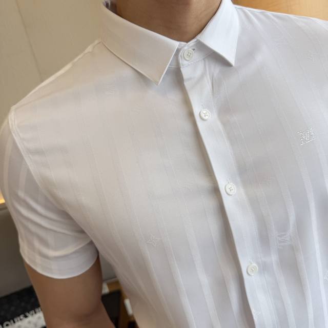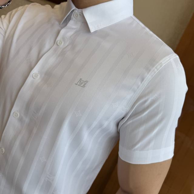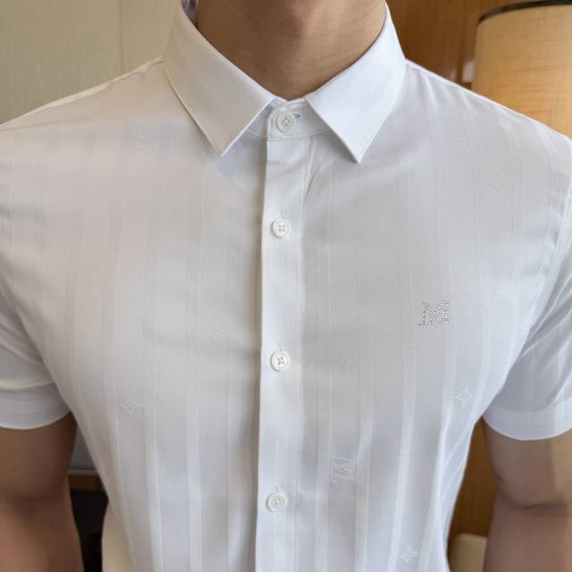 Lv 2025Ss Spring/Summer Fashion Hot Selling Short-Sleeve Shirt, sourced from a trading company, in perfect condition, considered a store-quality item, a predictably hot seller. Made of high-end custom imported long-staple cotton fabric, masterfully tailored, with unparalleled texture and excellent skin-friendliness. A striking aesthetic design, exquisite craftsmanship, smooth lines, and perfect styling! Effortlessly elevate your fashion sense, highly recognizable, and looks amazing on. Extremely meticulous and rigorous workmanship, with neat and fine stitching. Suitable for both business and casual occasions! Retail sizes M-3XL. Model 178cm, 145kg wears size L (