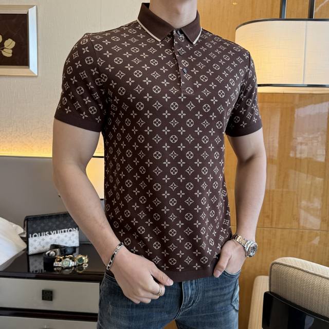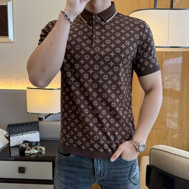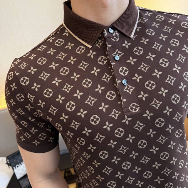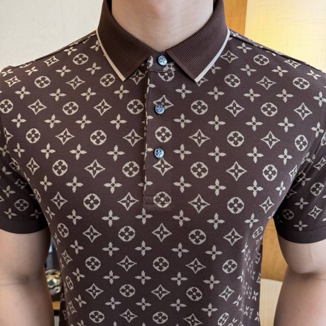 Lv- 2025Ss Spring/Summer New Polo Collar Short-Sleeve Collection. Made from premium jacquard double mercerized cotton fabric, featuring a stylish designer logo design. The fit is superb, the fabric is delicate, comfortable, and breathable. It looks great with any outfit