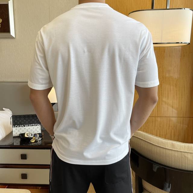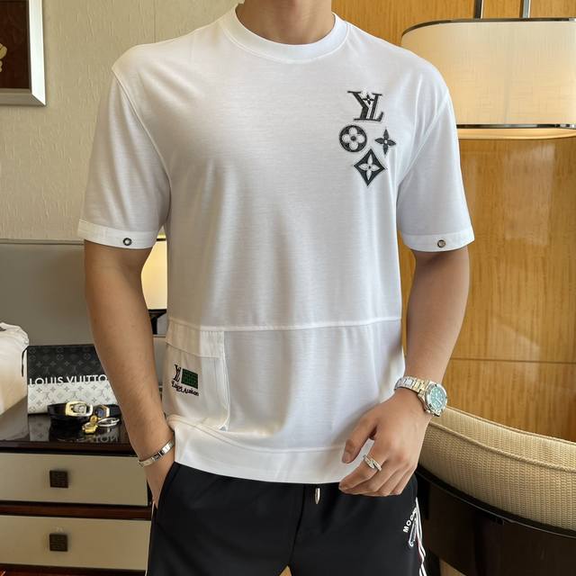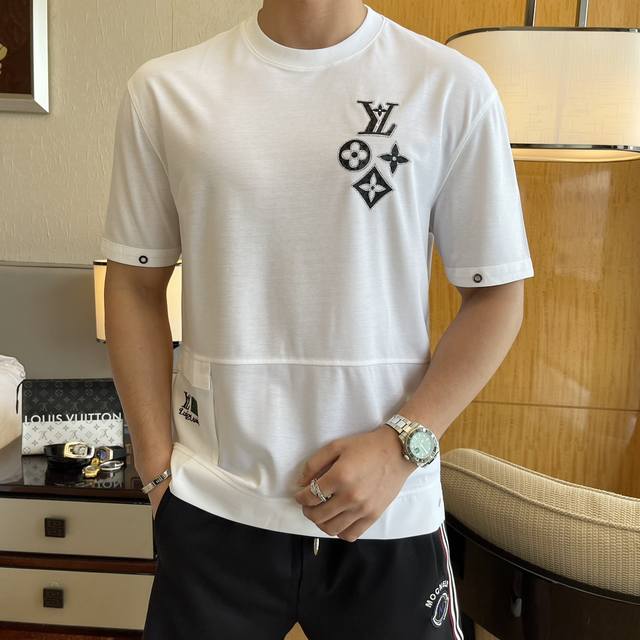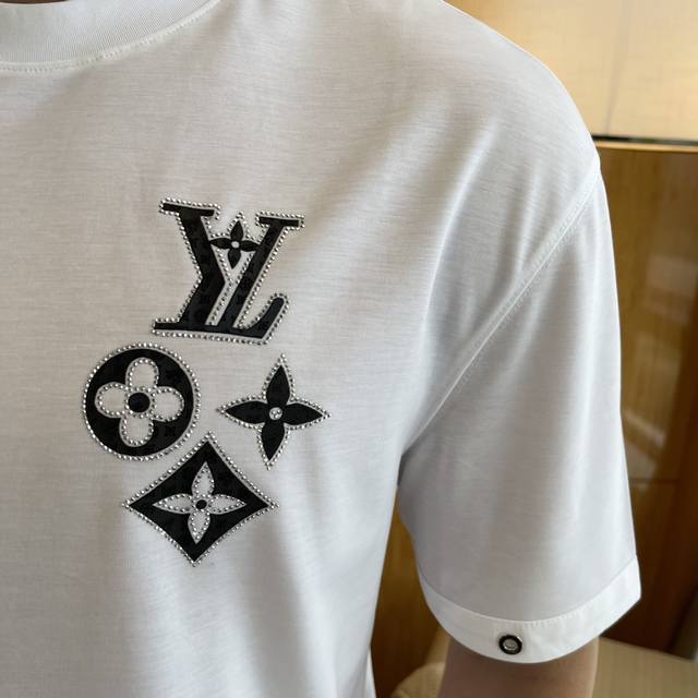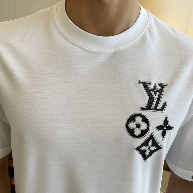 Lv 2025Ss Spring/Summer Premium Short-Sleeve T-Shirt, Official Website Synchronized High-End Quality Customization, Top-Grade Mercerized Cotton Fabric, 1:1 Production from Top Factories, Fashionable Brand Heavy Craftsmanship Logo Design, Soft and Delicate to the Touch, Skin-Friendly and Comfortable, Versatile and Casual, Excellent for a Stylish Look, A Must-Have for Trendy Men. Sizes: M-3XL. Model 175cm, 145kg, wears size L.