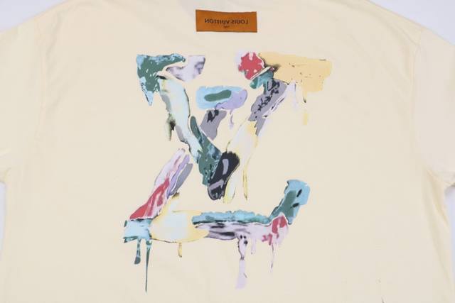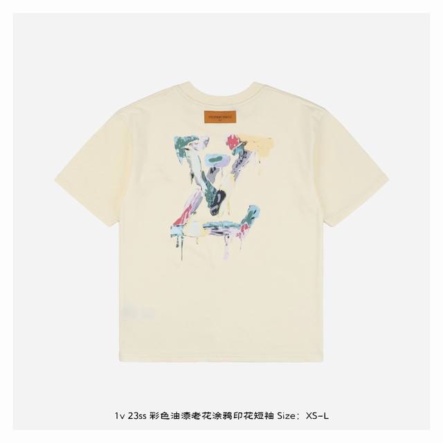 Lv 23Ss Colorful paint old flower graffiti print short sleeves The fabric is mad