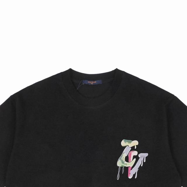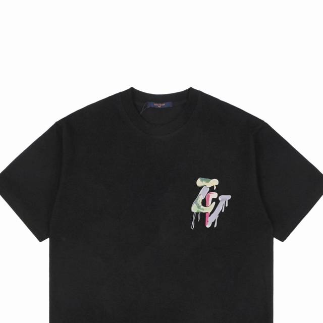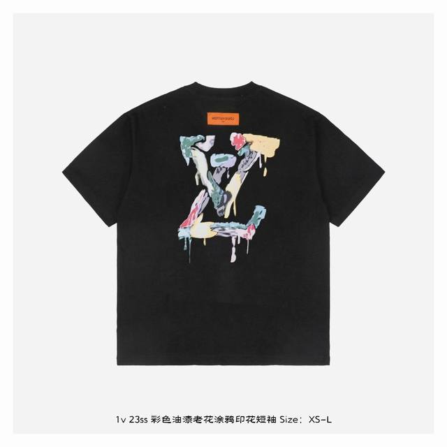 Lv 23Ss Colorful paint old flower graffiti print short sleeves