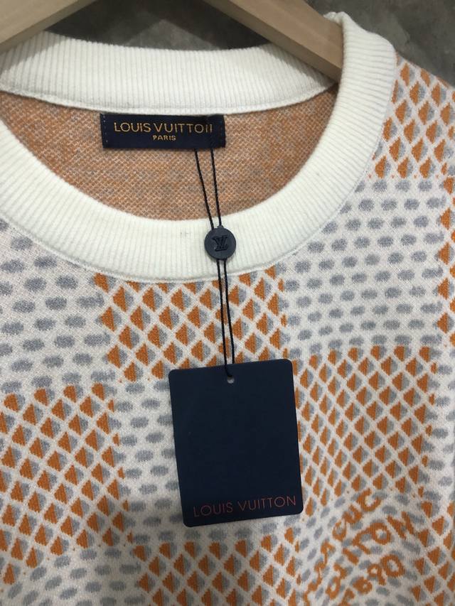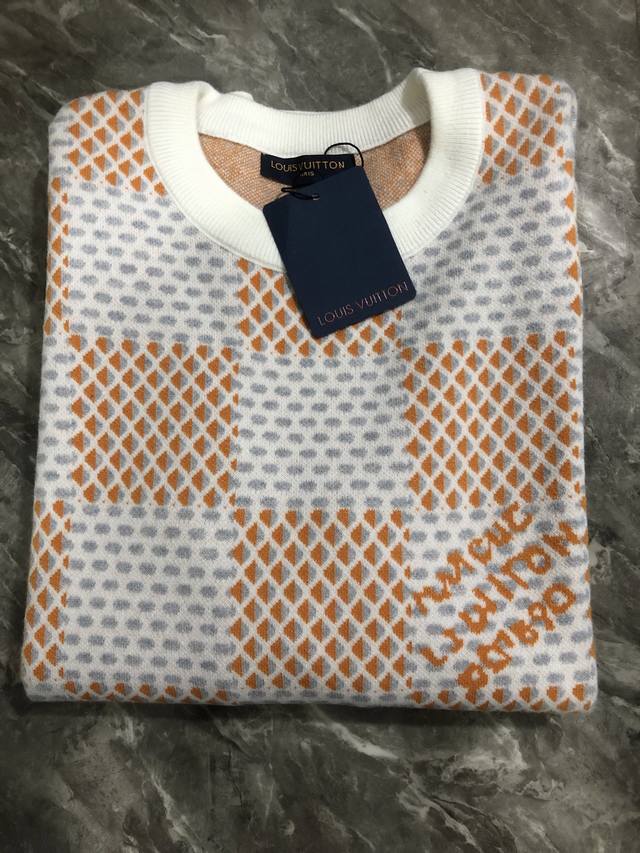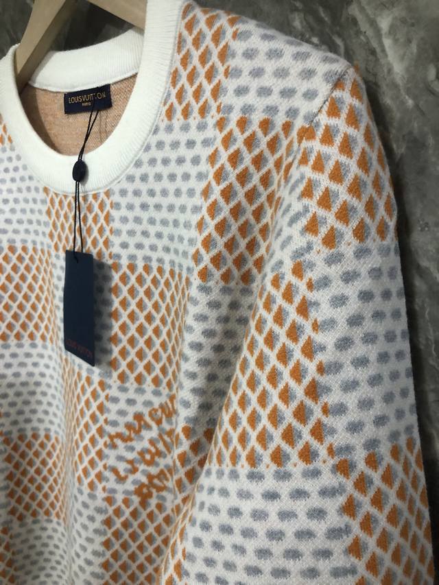 Lv 24Ss Autumn/Winter New Flyknit Sweater, Imported Machine Double-Sided 3D Jacquard Full-width Light Damier Jacquard with Textured Effect and Chest Pattern, Unisex Style. Original Mold, 1:1 Replica, Complete Accessories. Sizes: M, L, XL, XXL.