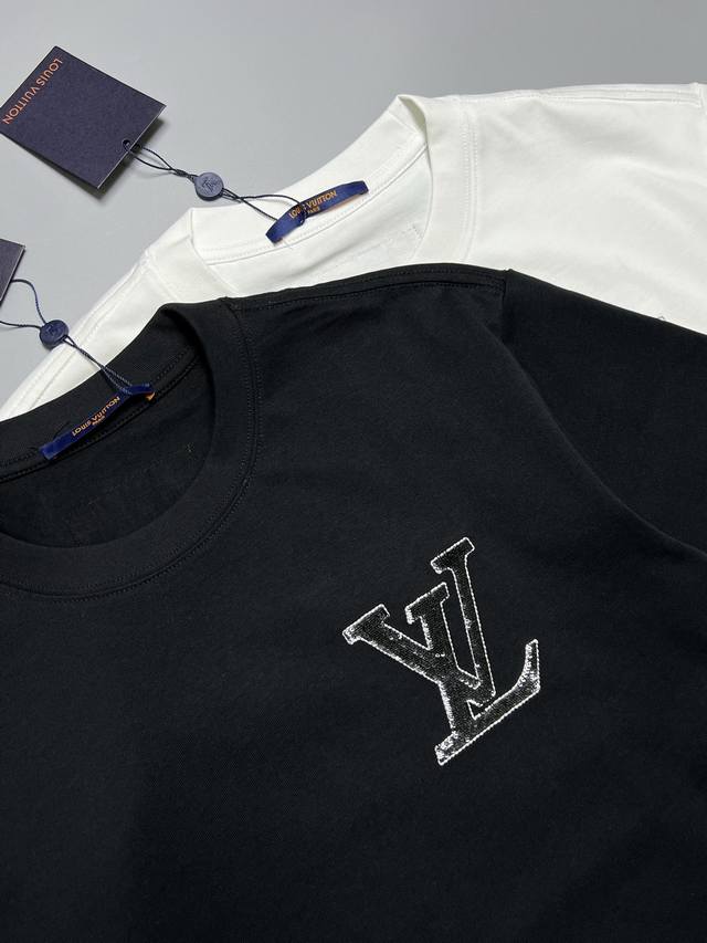 Louis Vuitton High-Quality 320g Crew Neck Short Sleeve T-Shirt. Brand Classic 1V
