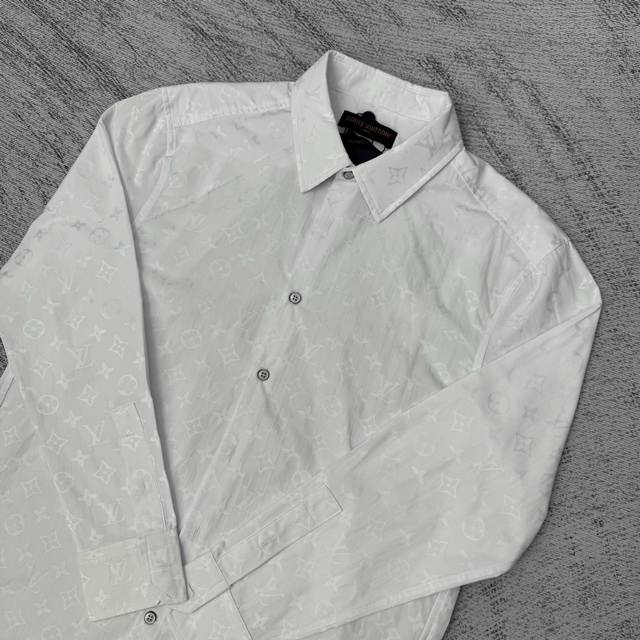 / Lv All-over classic Monogram jacquard white long-sleeved shirt Size SML XL Ddd