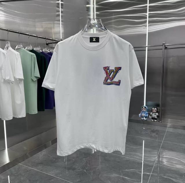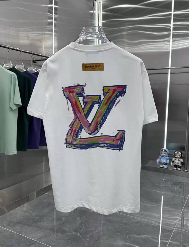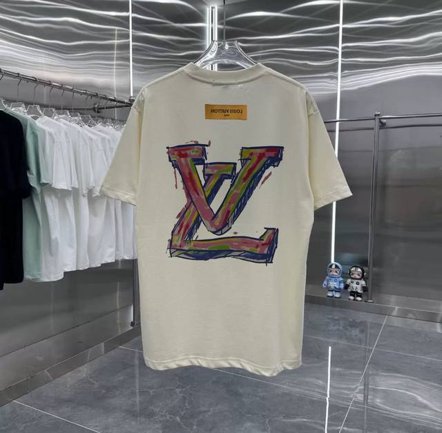 Lv Colorful retro couple print short-sleeved T-shirt with dropped shoulders