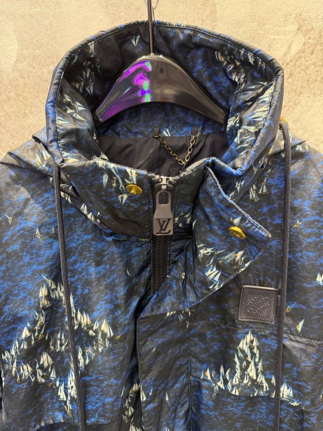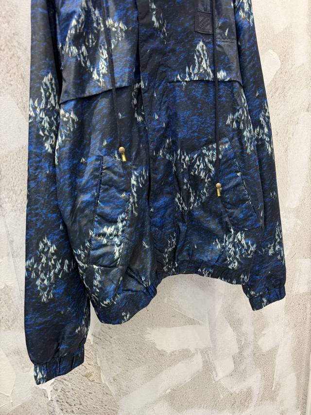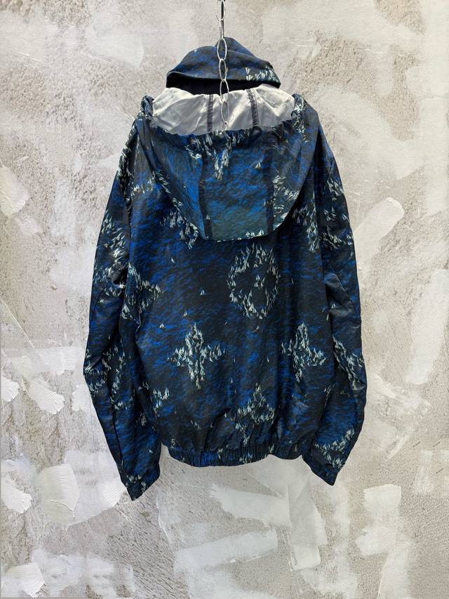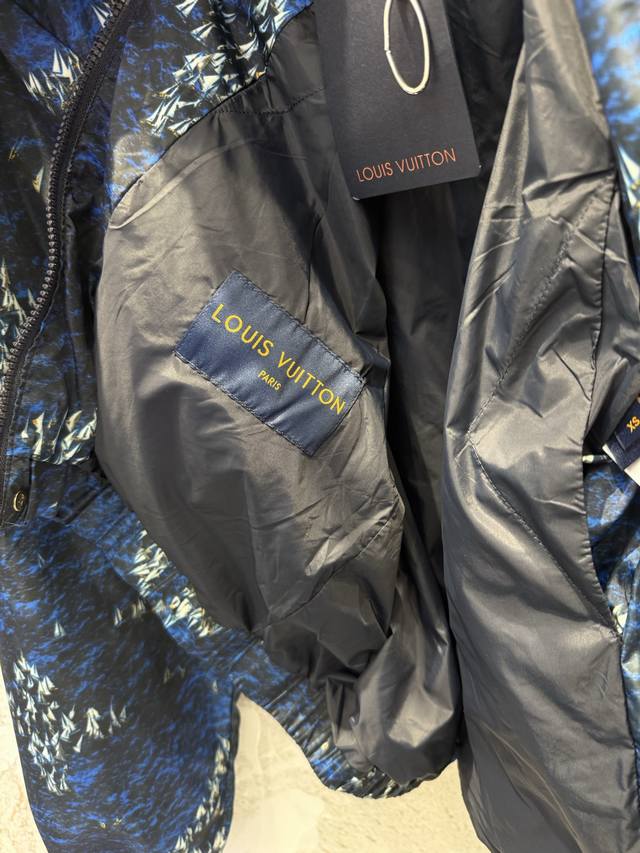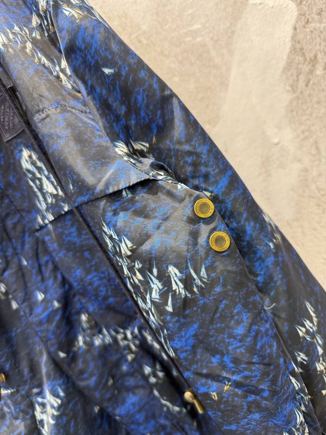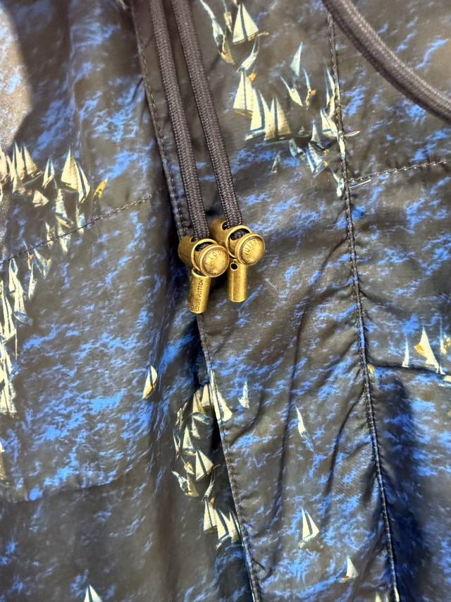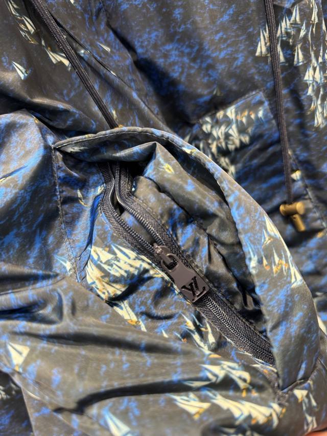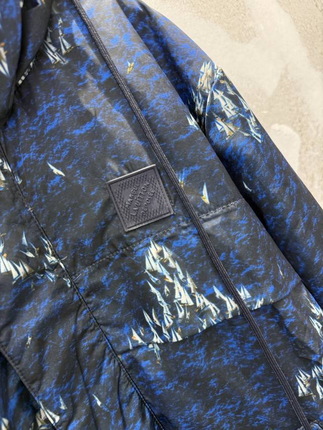 LV Correct Version Louis Vuitton 25Fw New Monogram Sailing Ship Print Windproof Jacket. This windproof jacket is made of lightweight technical fabric, featuring the Monogram Regatta pattern depicting a fleet of miniature boats setting sail on azure waters. Marque L.Vuitton D
