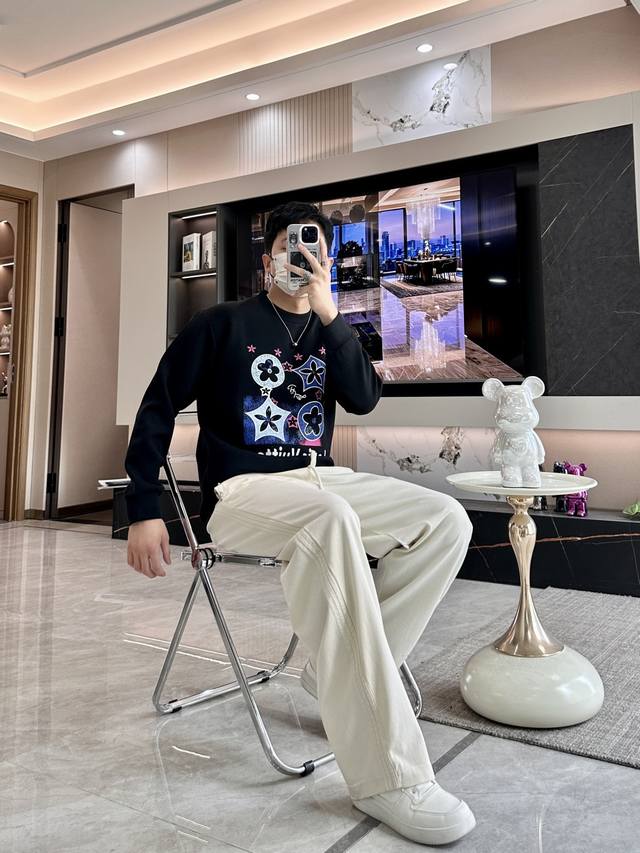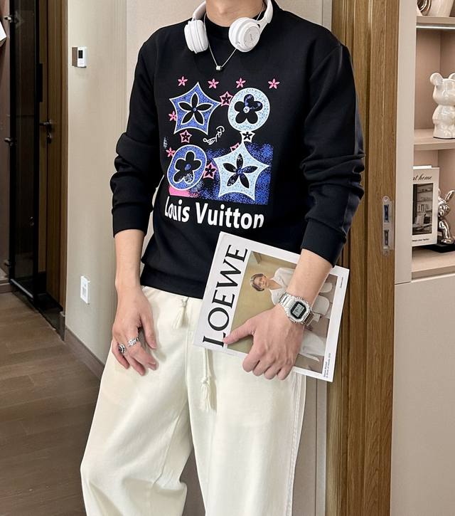 Lv Crew Neck Pullover Sweatshirt; Classic pullover unisex style, a simple and stylish piece, understated yet luxurious and versatile! Made from 100% high-weight cotton fabric supplied by our customers, the sweatshirt features a tightly woven and incredibly soft, skin-friendly lining, with a neat and orderly arrangement. The fabric is exceptionally soft, delicate, and comfortable to the touch, boasting top-tier quality! Understated yet highly recognizable, showcasing the brand's unique fashion charm! The standard unisex fit is super versatile and easy to wear, suitable for both men and women, creating a minimalist and trendy look. Sizes: XS-L
