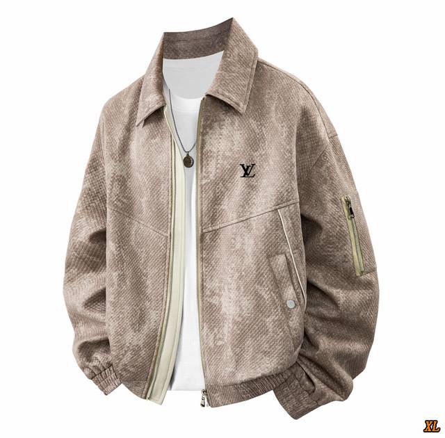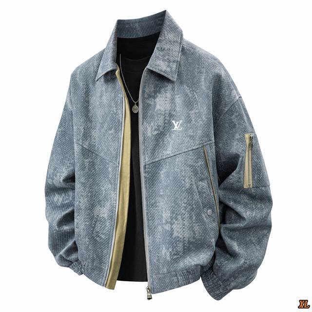 Lv Exclusive real shot of the new autumn high-quality M-8Xl large size jacket lapel jacquard imitation denim light luxury business plus fat plus trendy brand windbreaker jacket, this season's main product, sufficient supply, rest assured to promote, high-end quality, classic design, excellent workmanship, classic and versatile, the upper body effect is excellent