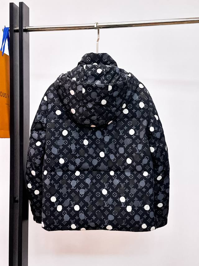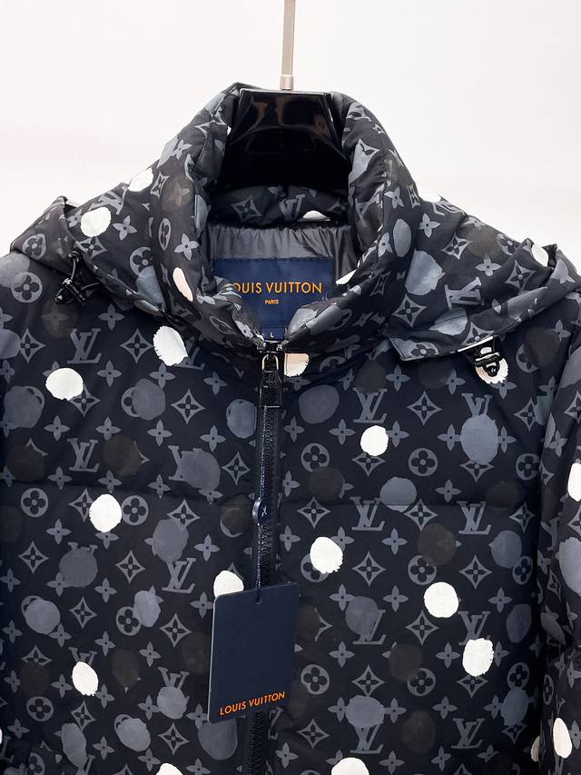 Lv Gw Exclusive Supply of New Classic Down Jackets for Autumn/Winter. This hooded, high-neck down jacket is a rare find through our trading company channels. The detachable snap hood is an essential warm item for cold weather, suitable for both everyday wear and outdoor activities. The down jacket features a smooth, glossy fabric that is wear-resistant, scratch-resistant, and easy to care for. It is filled with high-quality white goose down and features a large-square quilted design, creating a fluffy and full overall effect with good elasticity and strong warmth retention, allowing you to brave the cold autumn and winter outdoor weather. Sizes: M-3XL