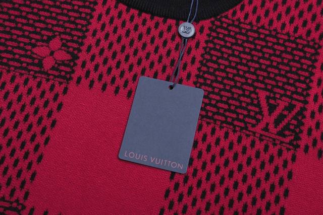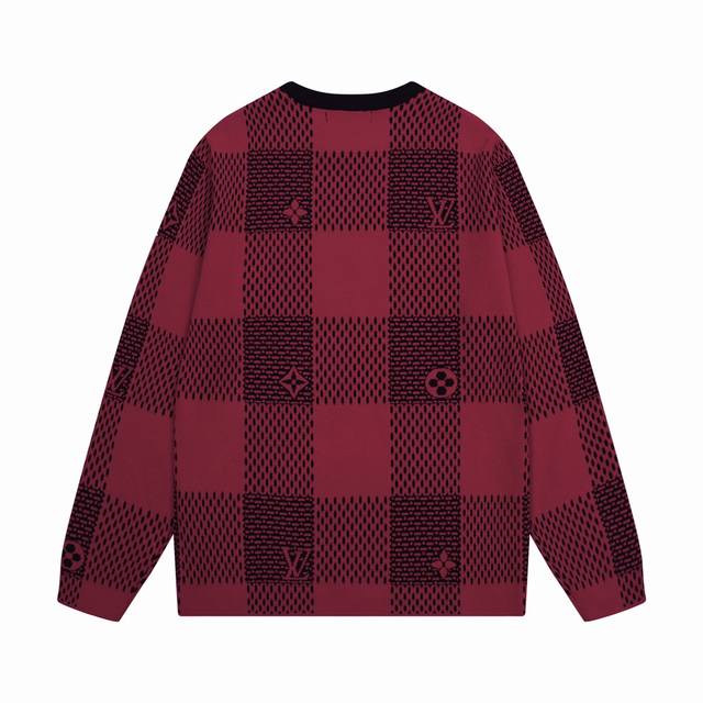 LV latest classic checkered logo crew neck wool sweater Colors: Red, White Sizes