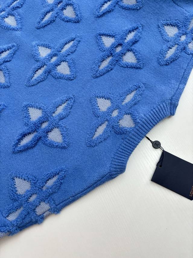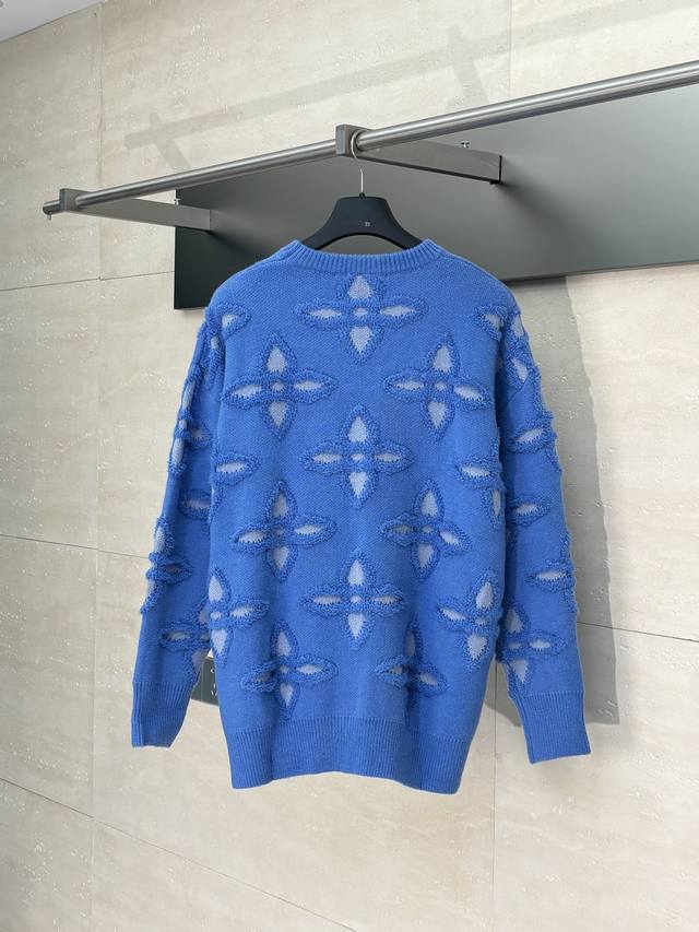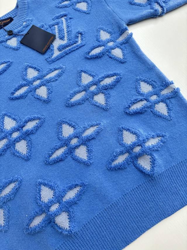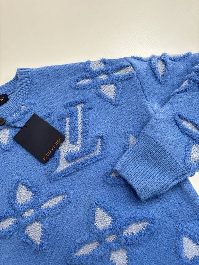 LV* Louis 25 New Embossed Jacquard Crew Neck Sweater DDD Made with custom wool blend fabric, this crew neck sweater is from the L Seo Bo collection. The 3D jacquard pattern pays homage to the artist's paintings. The embossed jacquard parts feature gray and white threads inlaid with 100% cotton, a pure cotton material that allows for a tighter texture, showcasing the brand's creative thinking and exquisite craftsmanship. The LV logo is prominently displayed throughout the entire design. The full-width jacquard is woven on the latest loom, with original computer scanning and positioning, matching the original logo size. It can be paired with bottoms from the same season to create a stylish look, suitable for various occasions. DDD Size: SML DDD
