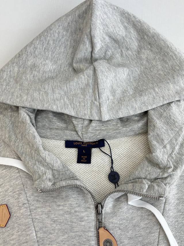 Lv Louis 25Fw autumn and winter new leather drawstring hooded zipper sweatshirt
