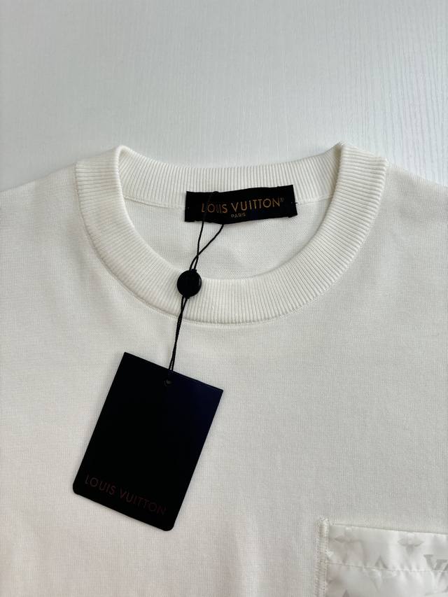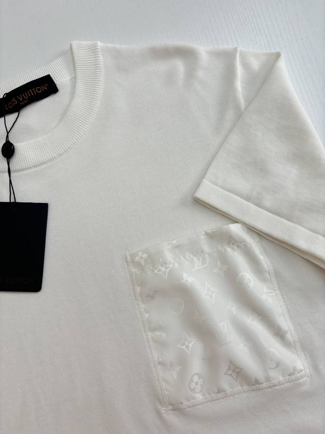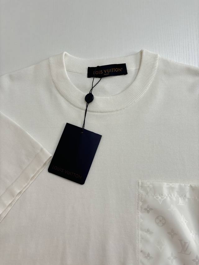 LV* Louis 25Ss New Knitted Jacquard Woven Nylon Pocket Short-Sleeve T-Shirt. Made with imported pure cotton fabric, it's delicate and soft, like a second skin, providing an unparalleled wearing experience. Lustrous nylon embellishments adorn the chest pocket and the crescent-shaped back neck detail, subtly blending the brand's essence and showcasing a unique style. Every detail has been meticulously crafted, highlighting quality and prestige. Size: SML XL