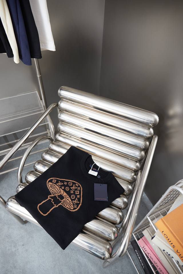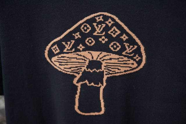 Lv Louis 25Ss Spring/Summer New Mushroom Jacquard Knit Short-Sleeve Top Ddd A must-have item for men and women's everyday commuting attire, a light luxury style. Correct version, welcome to compare. Ddd Detailed features Ddd High-viscosity cotton knit material, high-count cotton added, dry and avoids stuffiness Ddd Uses exquisite embroidery and intarsia techniques to present a mushroom with a Monogram pattern Ddd Ribbed neckline Ddd Original label, wash tag, brand moisture-proof paper packaging Ddd Color: Black Ddd Size: SML XL DDD