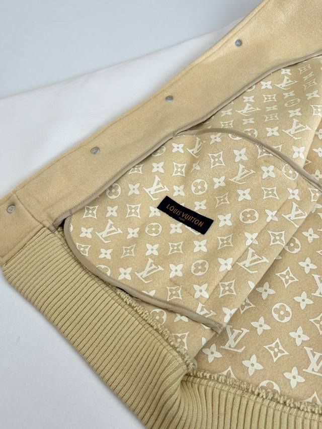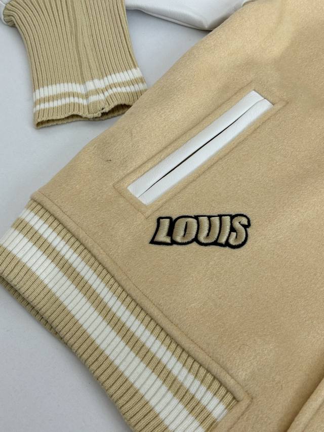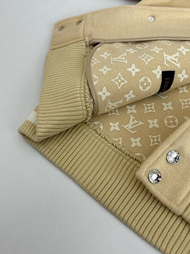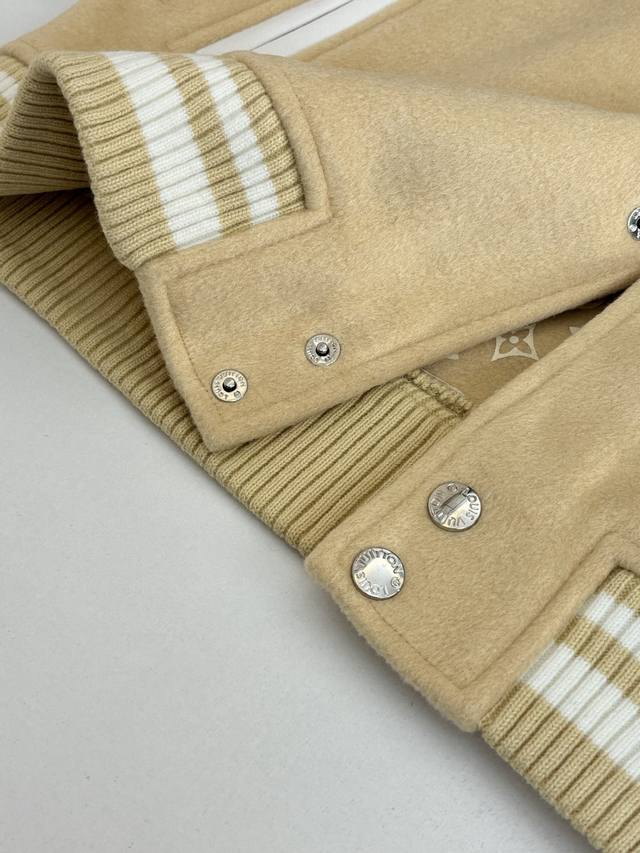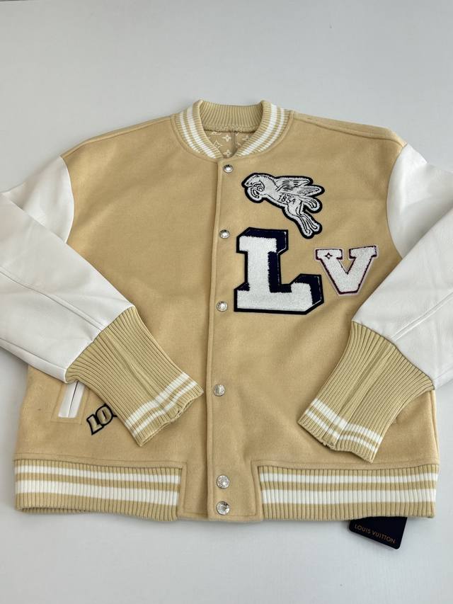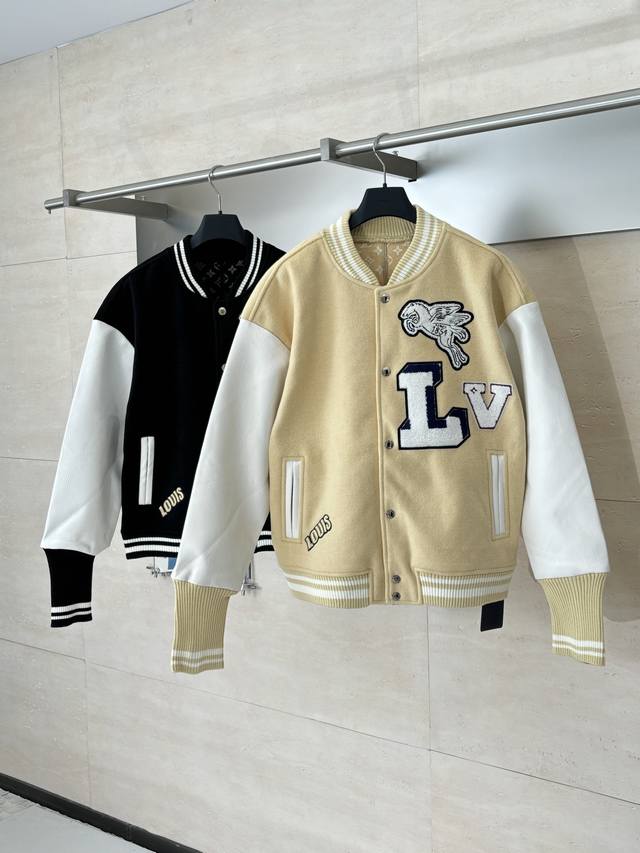 LV Louis Fw25 Pegasus Flocked Embroidered Baseball Jacket DDD. Made with a double-sided silk-wool blend for a comfortable feel, the ribbed sleeves and hem add a dynamic touch. The lining features a jacquard all-over letter print, with a three-dimensional embroidered Pegasus letter pattern that can be paired with other jackets to create a stylish look suitable for various occasions. Custom accessories included, all tags are complete, unisex! DDD Size: SML XL DDD