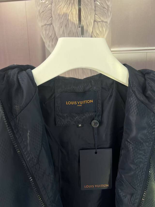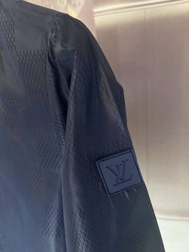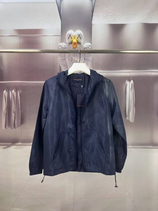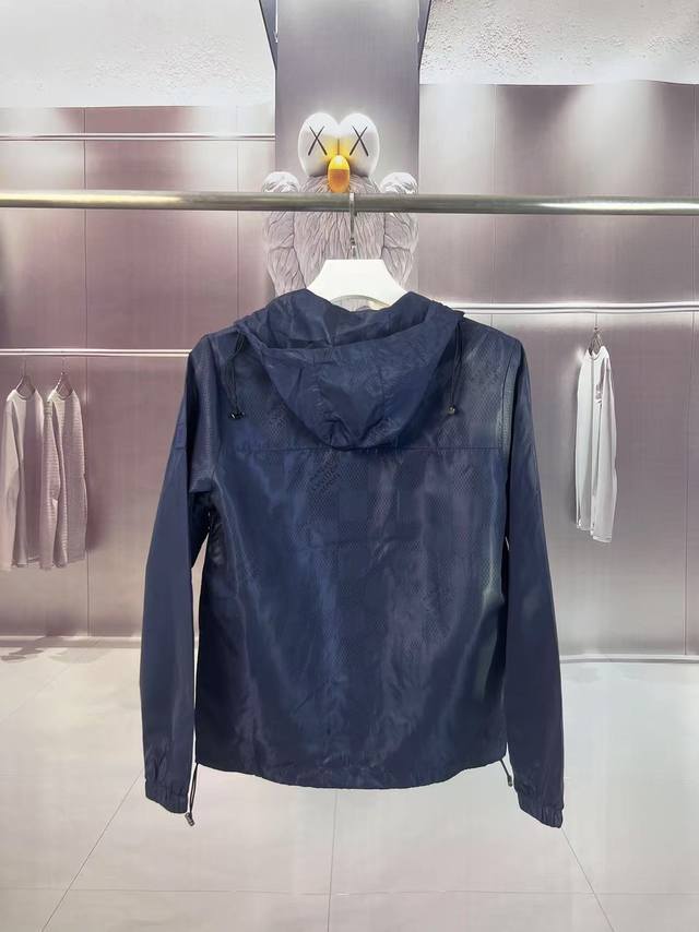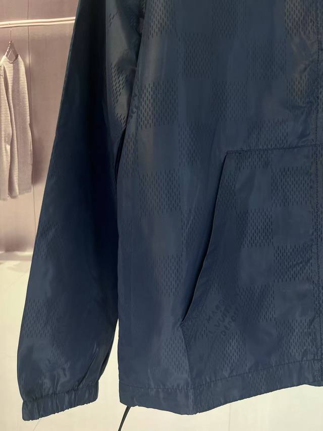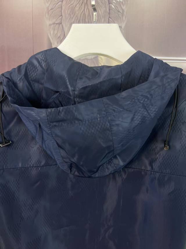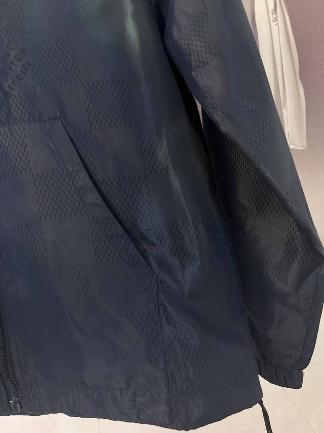 Lv Louis Vuitton 2025 Autumn/Winter new checkerboard pattern logo jacquard hooded windbreaker jacket with official website synchronized jacquard patchwork design on the sleeves. Original custom hardware zipper with neat stitching. Perfect upper body effect. Men's casual hooded jacket