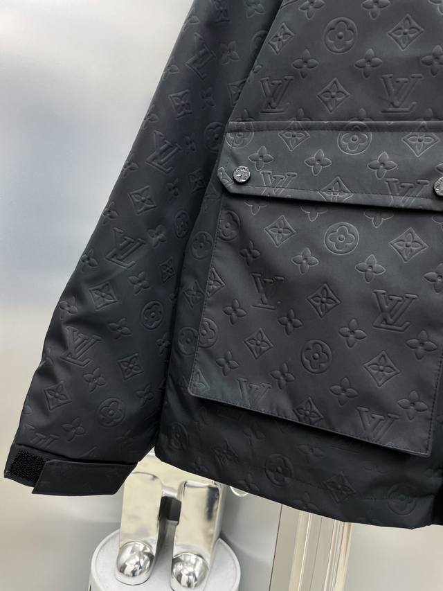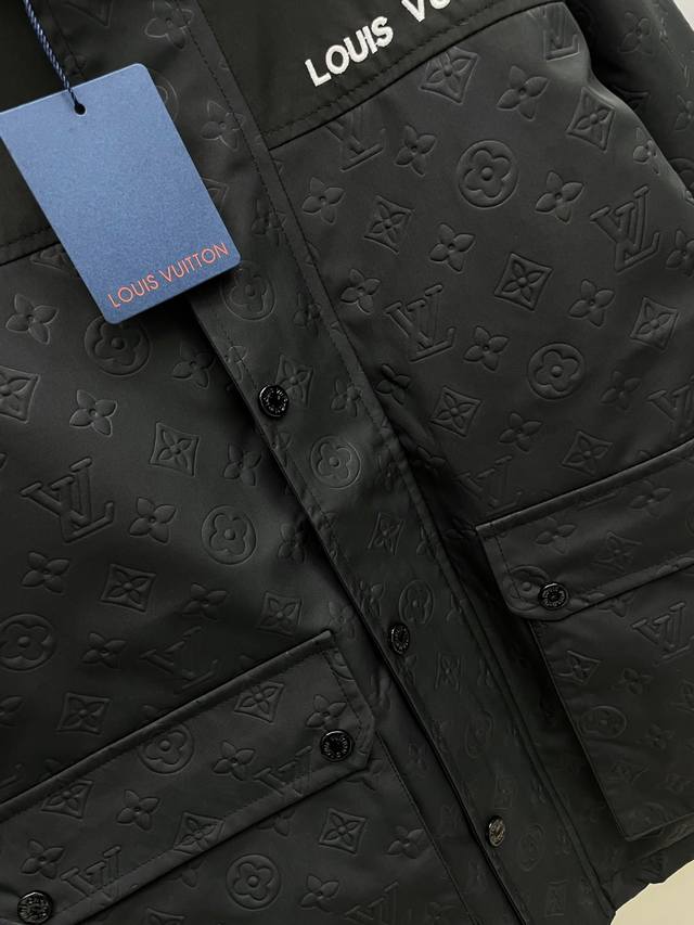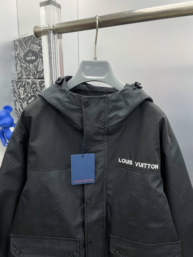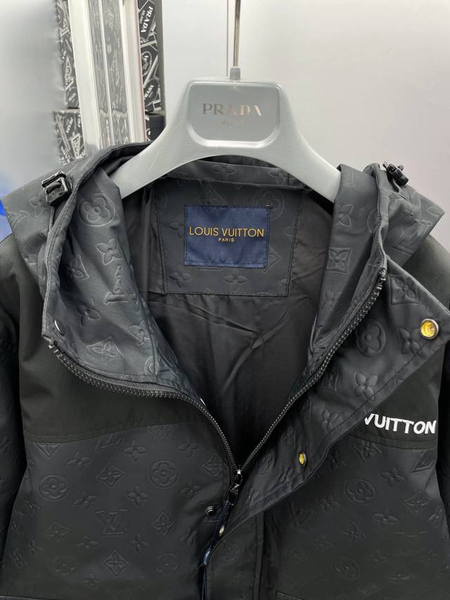 LV Louis Vuitton 2025 Autumn/Winter New Embroidered Letter 3D Embroidered Patchwork Logo Pocket Jacket Trench Coat Hooded Outerwear. Original single, complete with all three labels, high-end version, boutique custom-made. Highly breathable and comfortable fabric, impeccable details, brand elements and design concepts, reflecting high quality. Delicate and soft to the touch, presenting a casual cut, excellent fit. Sizes: M