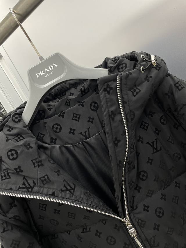 LV Louis Vuitton 2025 Autumn/Winter New Flocked All-over Logo Down Jacket Hooded