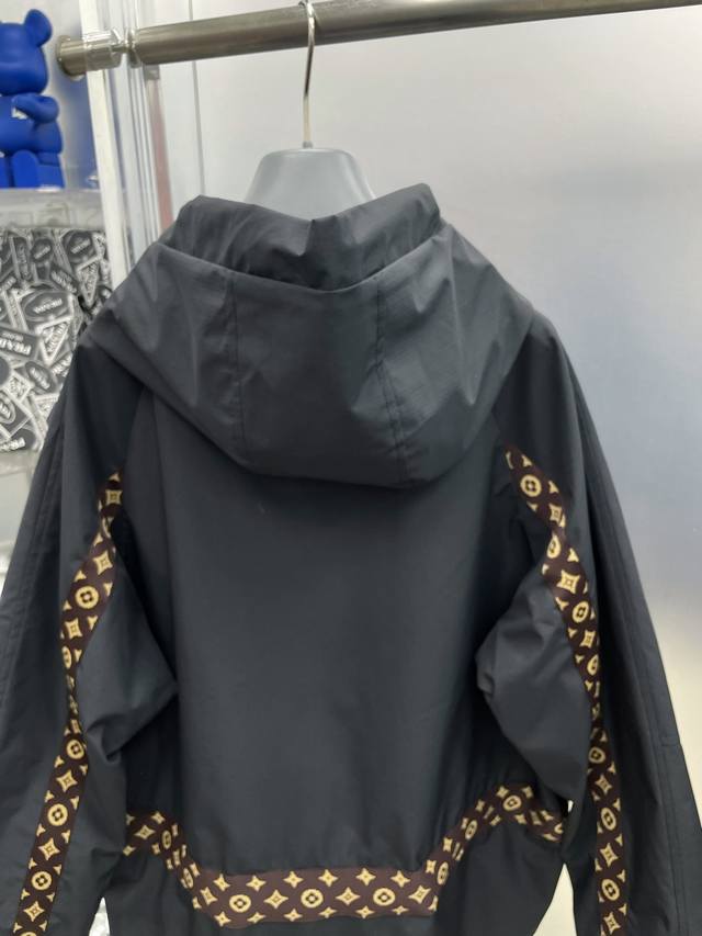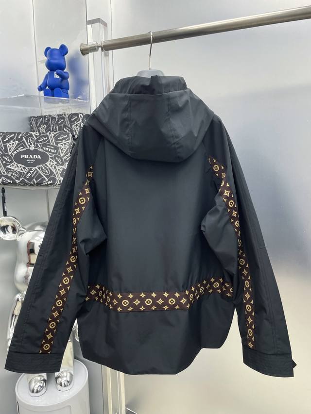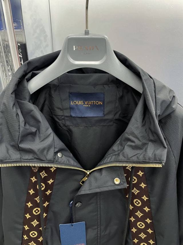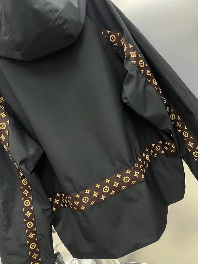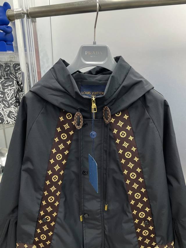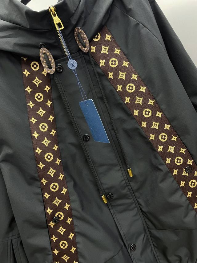 LV Louis Vuitton 2025 Autumn/Winter New Monogram Webbing Patchwork Letter Logo Trench Coat Hooded Jacket. Original single item with complete tags, high-end version, boutique custom-made. Highly breathable and comfortable fabric, impeccable details, brand elements and design concepts, reflecting high quality. Delicate and soft to the touch, presenting a casual cut, excellent fit. Sizes: M