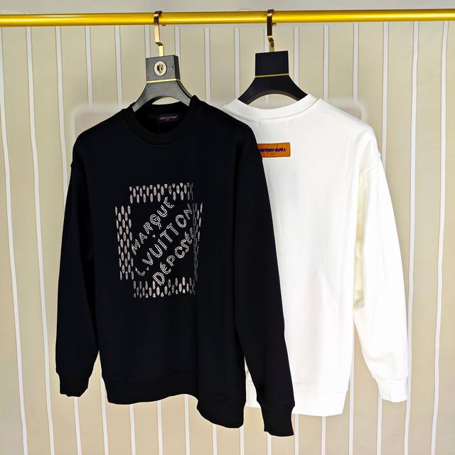 Lv Louis Vuitton 2025 Autumn/Winter New Original Men's Casual Sweatshirt High-end Custom High Version Fashionable Versatile Hot Selling Style Os Loose Drop Shoulder Oversized Fit Hot-fix Rhinestone Logo Design Original Imported 420g Double Stretch Pure Cotton Fabric Ribbed Cuffs, Neckline, and Hem Super Soft and Delicate Feel, Skin-friendly and Comfortable to Wear High-end Boutique Factory P Fine Workmanship Very Good Fit Men's Must-have Item All Three Labels Complete Size: S-3XL Largest size can fit around 220 jin (110 catties) Please provide your height and weight when ordering