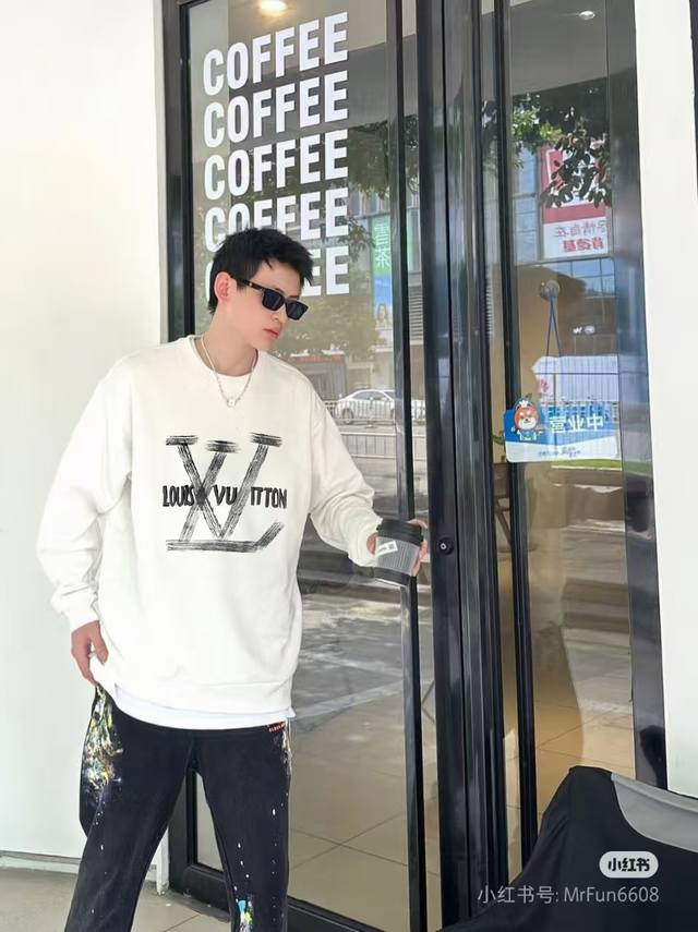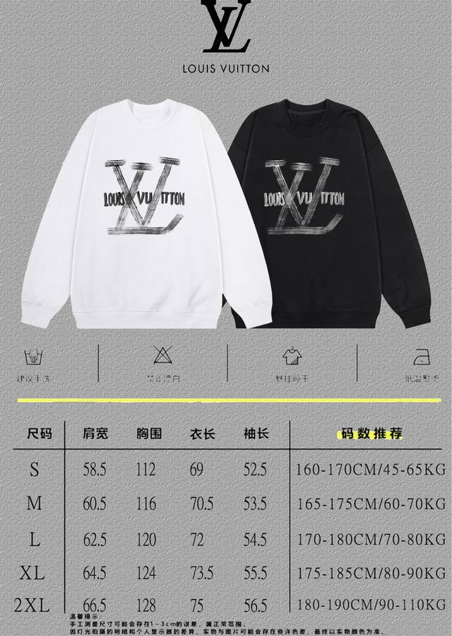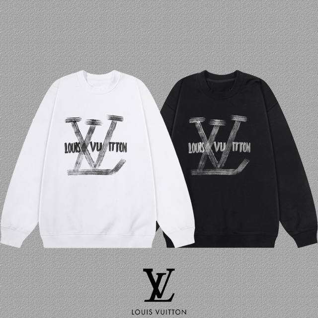 Lv Louis Vuitton] Ddd 2025 Autumn/Winter New Printed Letter Crew Neck Sweatshirt Ddd High-end Pure Cotton Double Stretch 400g Terry Fabric Ddd Colors: Black, White Ddd Sizes: S, M, L, XL, 2XL DDD