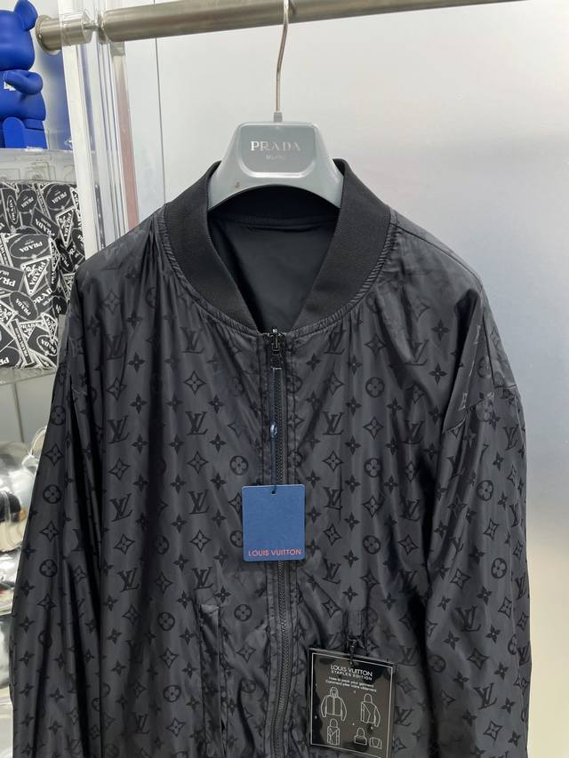 LV Louis Vuitton 2025 Autumn/Winter New Reversible Jacket with All-Over Logo Print and Subtle Lettering. Original single piece with all three labels, high-end version, custom-made by the boutique. Highly breathable and comfortable fabric, impeccable details, brand elements and design concepts, reflecting high quality. Delicate and soft to the touch, with a casual cut, and a fantastic fit. Sizes: M