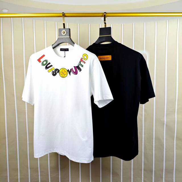 Lv Louis Vuitton 2025 spring and summer new original men's round neck short-sleeved quick-drying T-shirt counter simultaneous sale high-end quality high version Os version wide version popular chest printing Logo pattern design custom imported double-strand 100% cotton fabric soft and delicate to the touch skin-friendly and comfortable to wear OEM factory P fine workmanship very handsome and stylish men's must-have item three complete sizes: S-3Xl slightly larger maximum size can wear about 220 pounds please report height and weight when placing an order black white