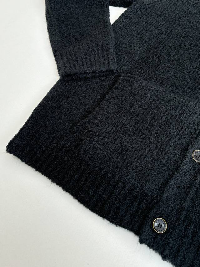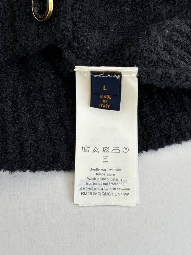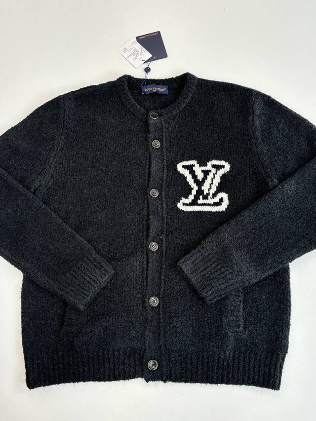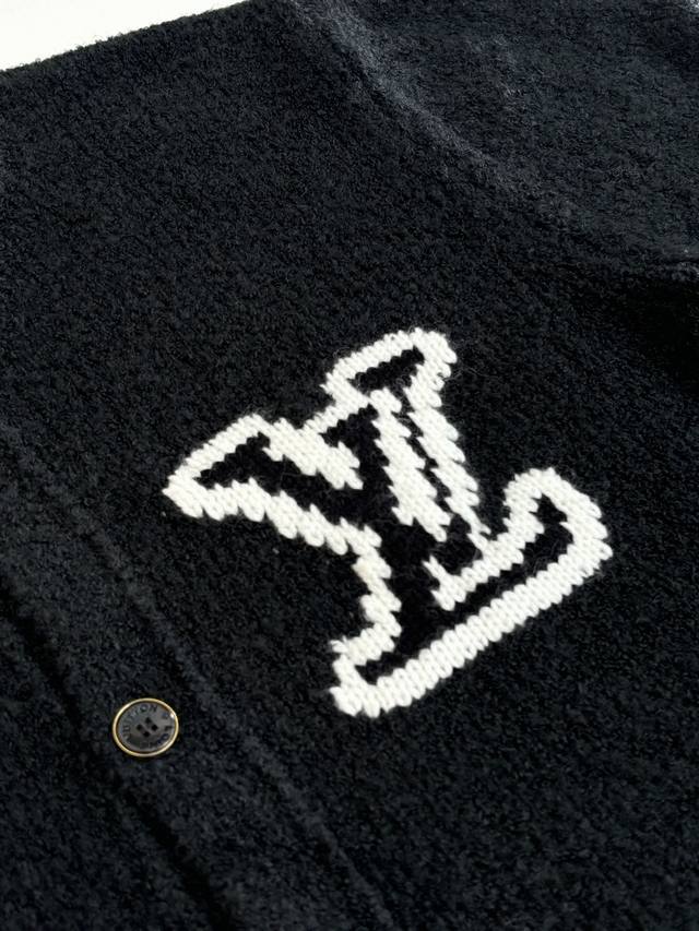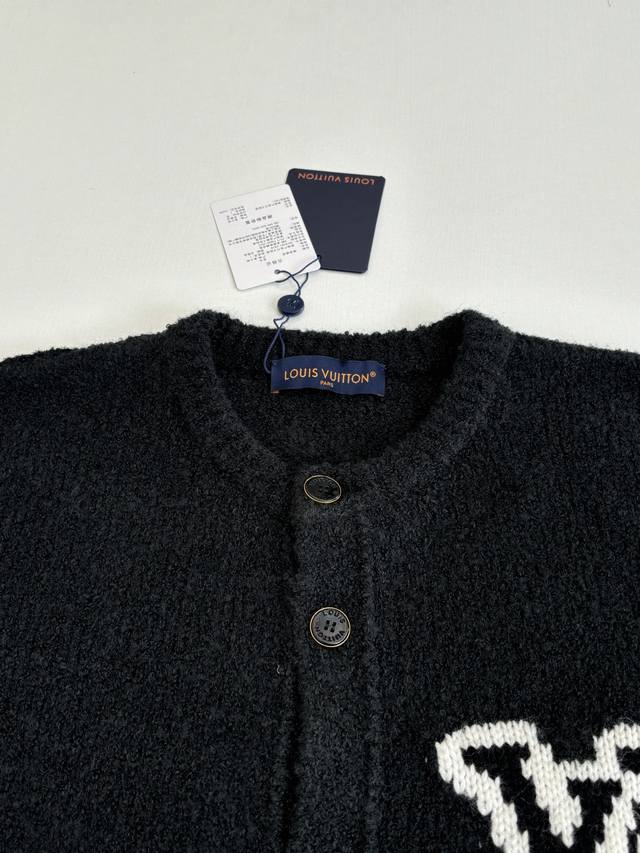 LV Louis Vuitton 25Fw Autumn/Winter New Thick Knit Intarsia Cardigan DDD This new collarless cardigan features a large logo on the left chest using a contrasting intarsia technique. The buttons are printed with " Louis Vuitton". Ddd The cardigan has a round neck, single-breasted design, a relaxed and casual fit, and side pockets. It's made of 82% sheep's wool and 18% nylon, a plush knit fabric, exuding a relaxed yet luxurious style. The plush material is perfect for autumn and winter. DDD Size: SML XL DDD