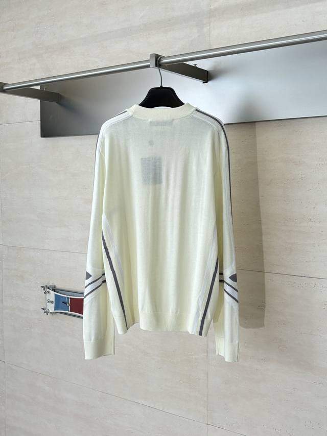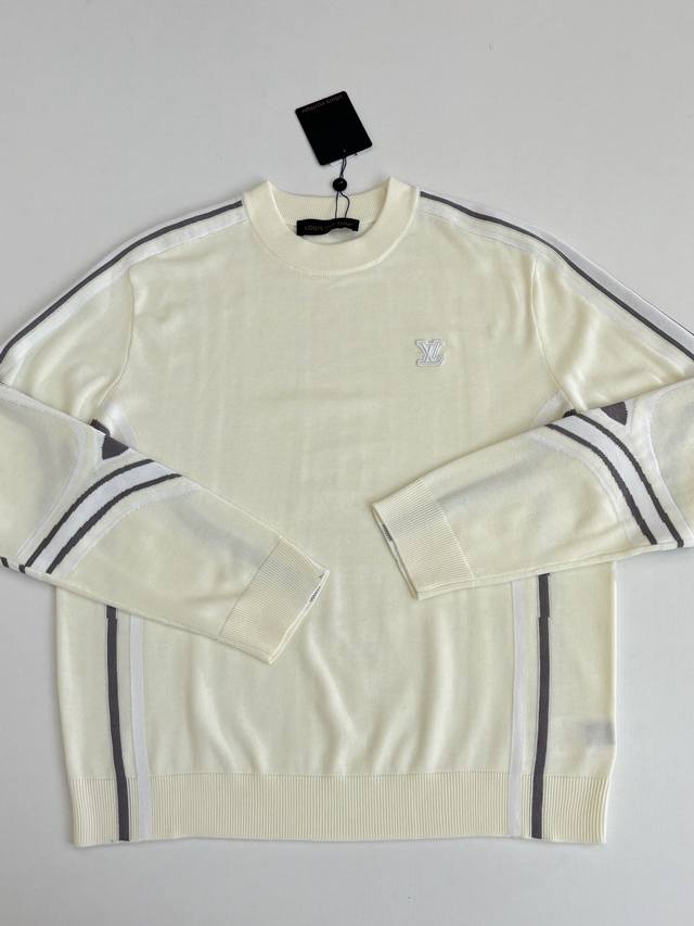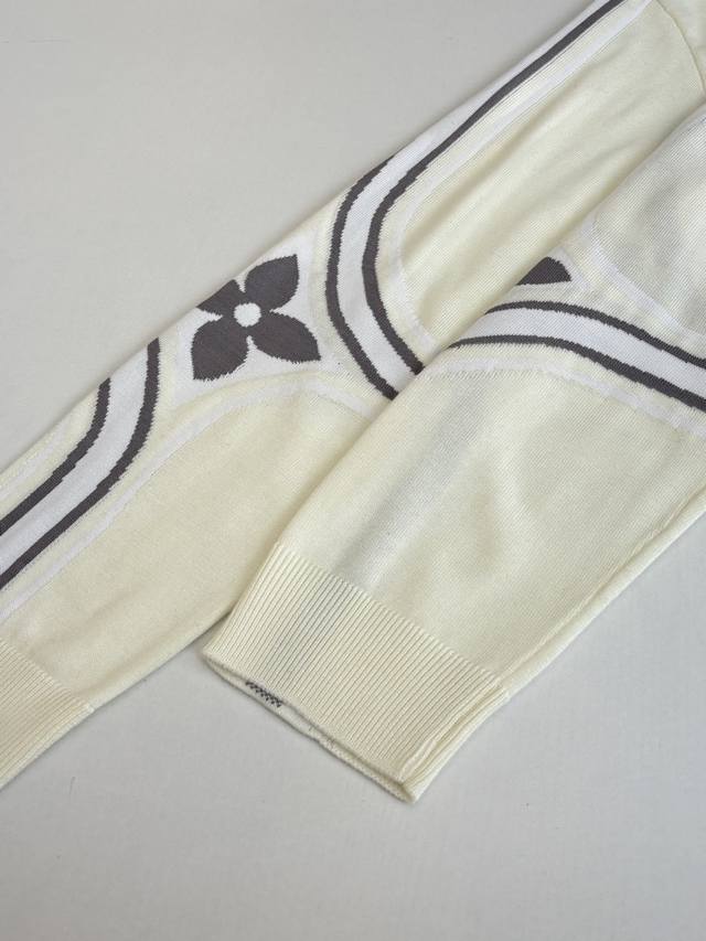 LV Louis Vuitton 25SS Fall/Winter New Ski Chemical Series Four-Leaf Clover Floral Pullover Knit Sweater DDD The new Ski series features a 3D LV logo on the left chest, and the sleeves incorporate the brand's classic Monogram four-leaf clover jacquard. Gray and white contrasting stripes on the sides enhance the sporty and casual style. Made from a technical sheep wool blend, the sweater has a relaxed, dropped shoulder fit, a round neck, and ribbed trim, balancing style and comfort. It can be worn casually or as a warm inner layer for light outdoor activities like snowy slopes. DDD Size: SML XL