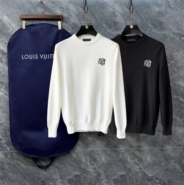 Lv Louis Vuitton Crew Neck Sweater with Complete Logos DDD Premium Wool Blend Sweater for Men and Women, High-End Custom-Made Series. Belongs to the brand's high-end main line, patented top-grade yarn blend. Innovative interpretation of conventional styles, fabric configuration is revolutionary, and details are remarkable. DDD The most anticipated sweater for autumn/winter, full of high-end feel. Designated by the brand's Zhejiang processing factory. High cost-performance ratio. Excellent quality Merry wool yarn, super soft, delicate, and non-pilling and non-deforming. DDD Available in major stores. A must-have item every year. Seemingly simple, but with extremely complex craftsmanship. Suitable for all body types. Extremely skin-friendly and comfortable. Can be worn alone, under a coat, or as an outer layer. DDD Colors: Black, White DDD Sizes: M, L, XL, 2XL, 3XL DDD