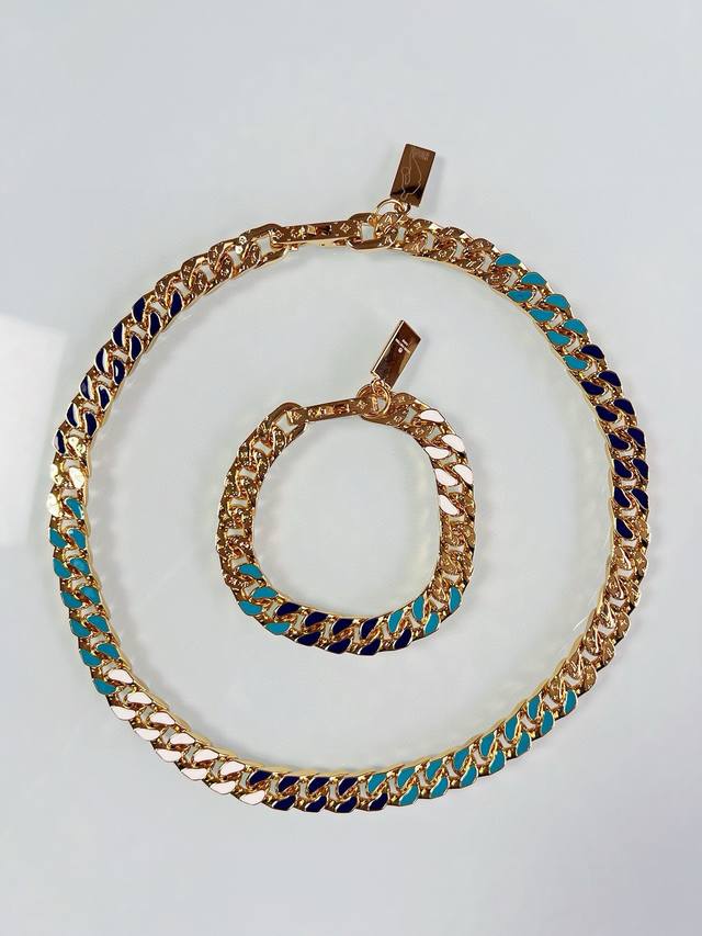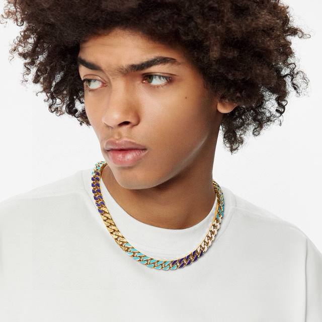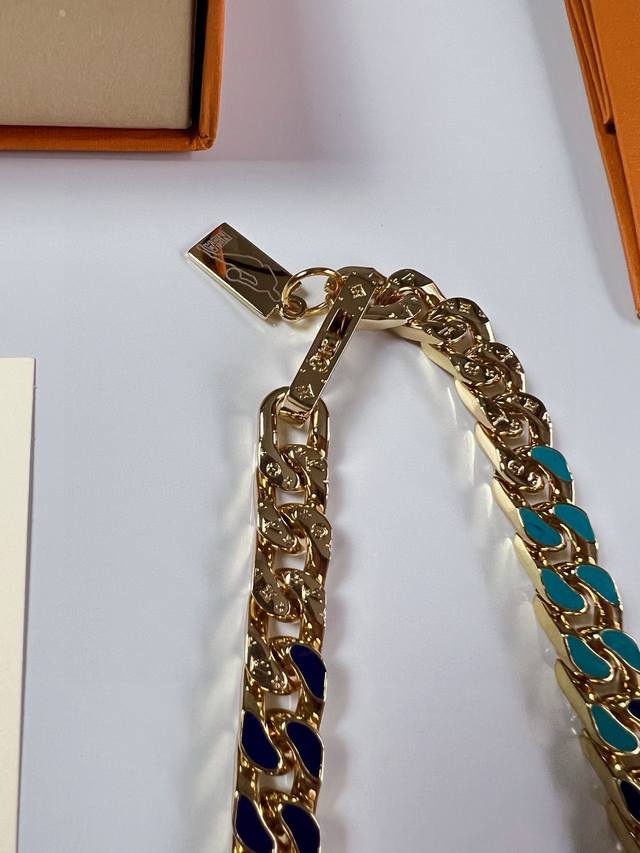 necklace presents a variety of colors and finishes, and the shape is fashionable. Equipped with polished and old enamel links, it highlights the brand's exquisite craftsmanship.
