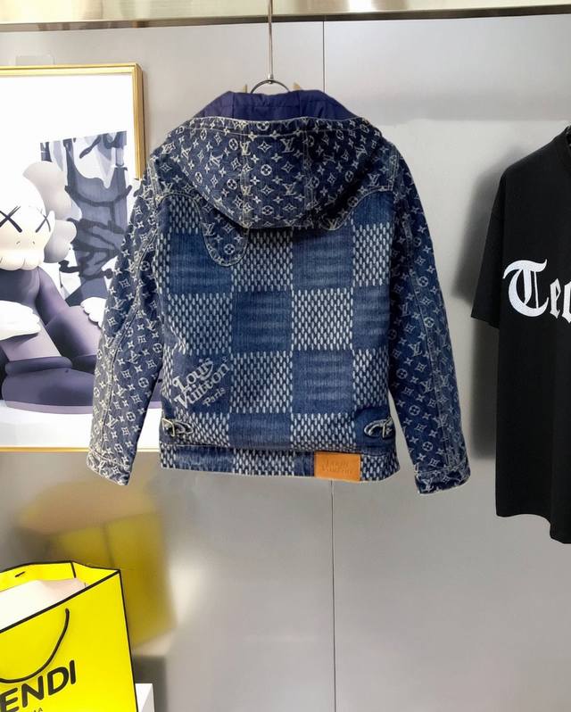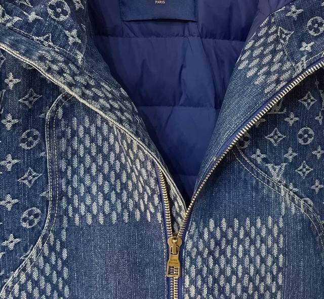 LV Louis Vuitton Damier Denim Hooded Down Jacket. Purchased by Yb for pattern making. Can be paired with bottoms from the same season to create a stylish look. Suitable for various occasions. Custom accessories, complete with tags. Unisex! Worry-free after-sales service - top-notch service, efficiency, and quality! Fit: Loose fit. Color: Solid color. Size: M-3XL. Please provide height and weight when ordering.