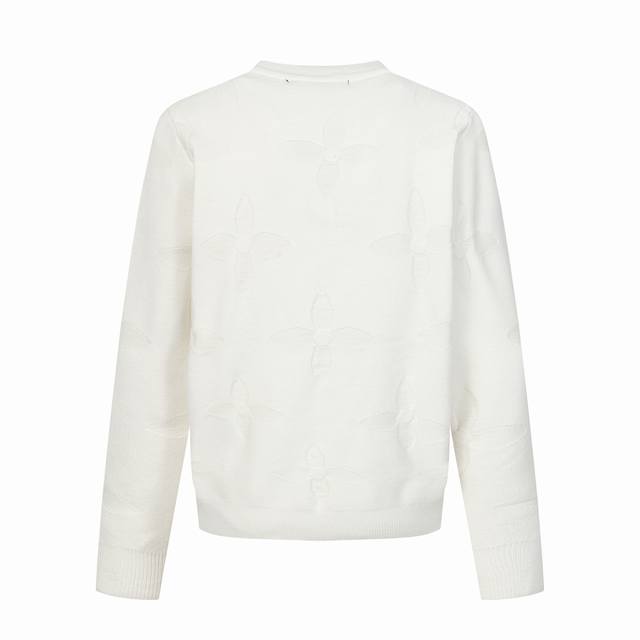 LV Louis Vuitton Decorative Details Knit Crew Neck Sweater (Ddd) This crew neck sweater is crafted from responsibly sourced fine cotton and features an embroidered Ddd Monogram pattern on the front, creating a three-dimensional openwork crochet effect. The embroidered LV lettering adorns the front. (Ddd) It adds a touch of sophistication to any look, making it a comfortable choice for winter style. (Ddd) Size: SML (Ddd)