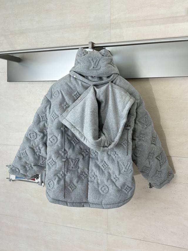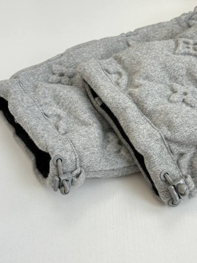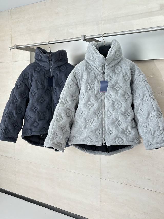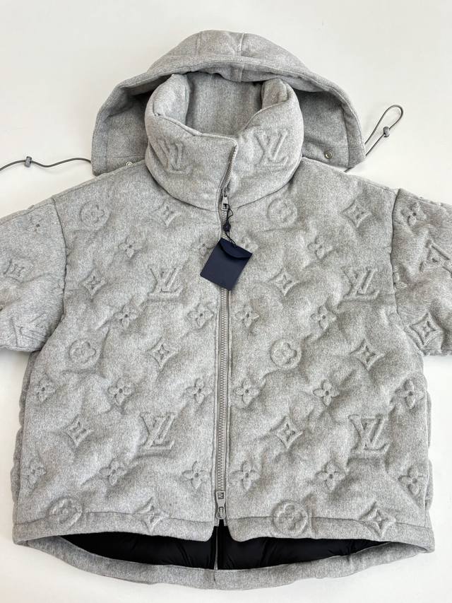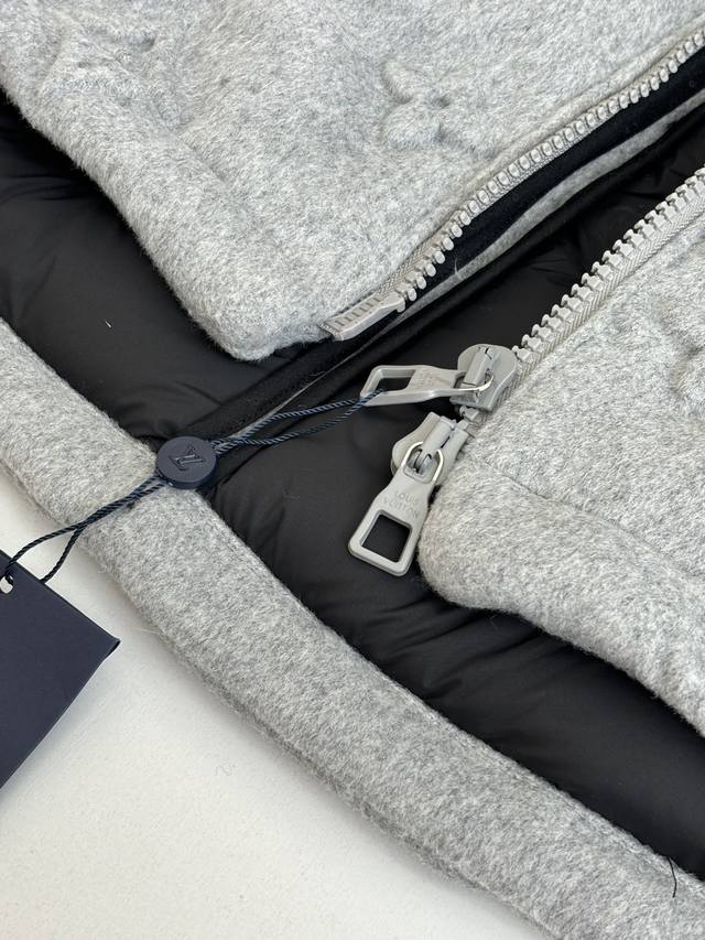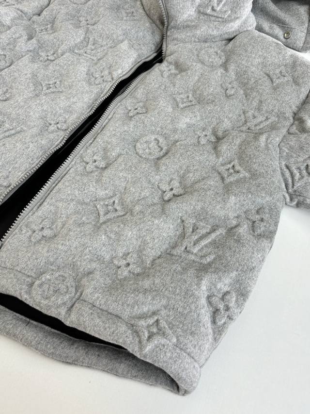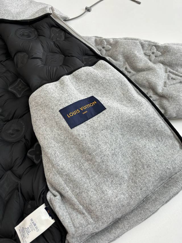 LV Louis Vuitton Monogram Embossed Down Jacket DDD The fabric itself contains a large amount of cashmere, and the lining is filled with 90% white duck down, making it super fluffy. The craftsmanship is incredibly difficult; the embossing process for different materials results in a scrap rate of over 50%. The pockets have concealed zippers, providing excellent warmth and security. The fit is outstanding; it doesn't look bulky at all, but rather a stylish statement piece. I personally love gray clothing because gray exudes a high-end feel, especially when paired with the embossed monogram logo. DDD Size: SML XL DDD